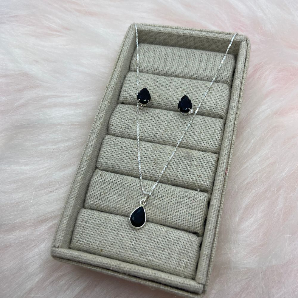 Conjunto Colar e Brinco Gota Preta em prata 925