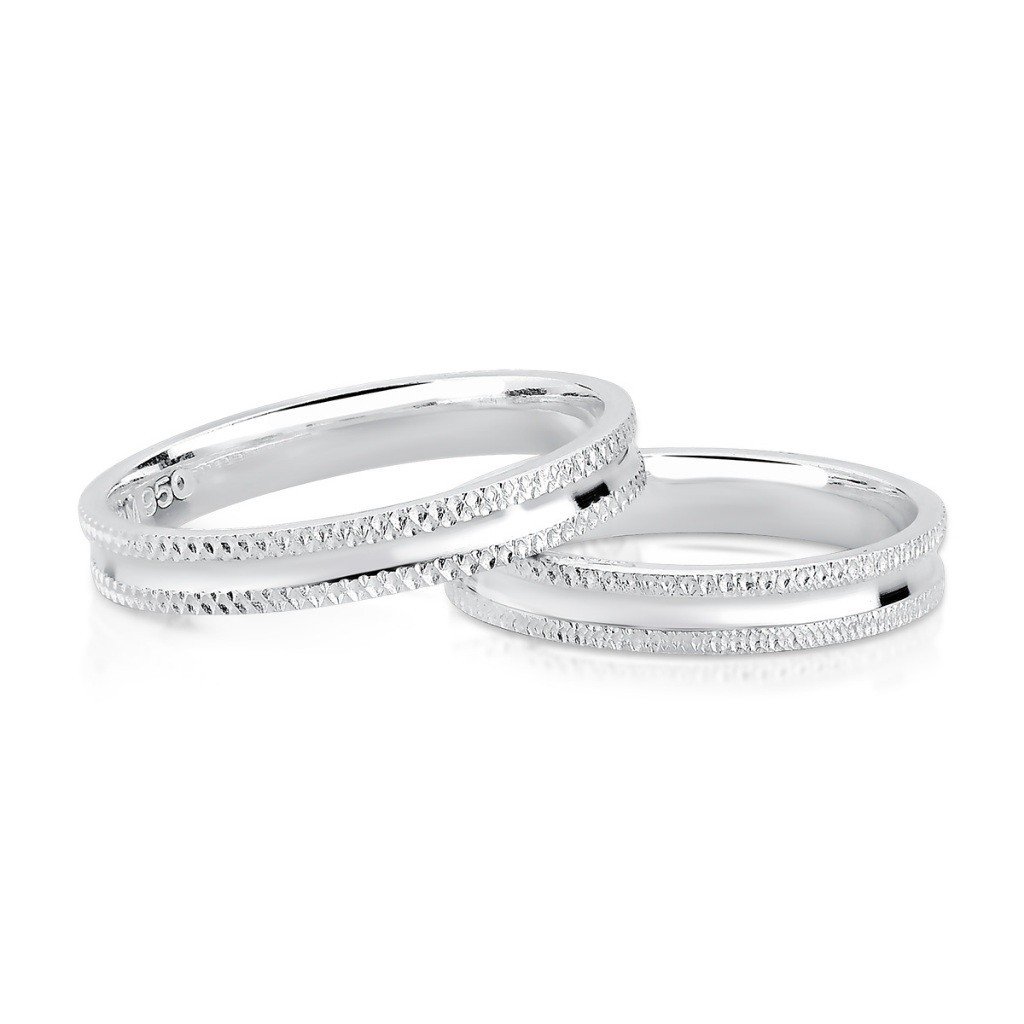 Par de Alianças de Compromisso em Prata 925 Detalhada 3mm + Caixinha
