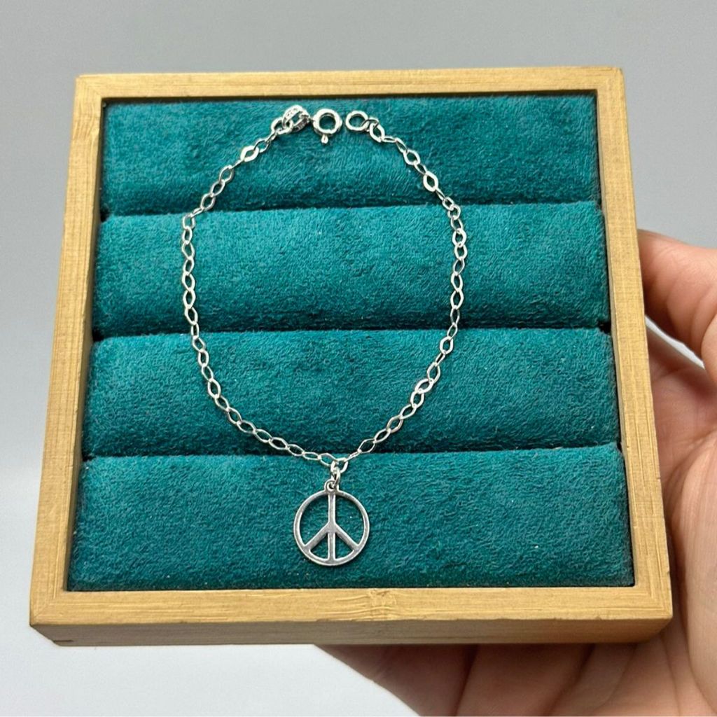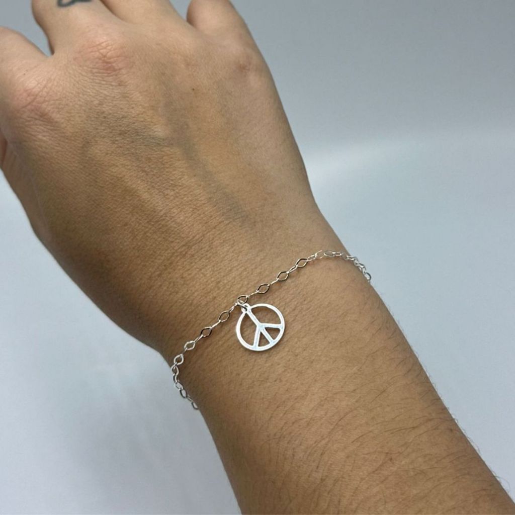 Pulseira Feminina de Prata 925 Símbolo da Paz