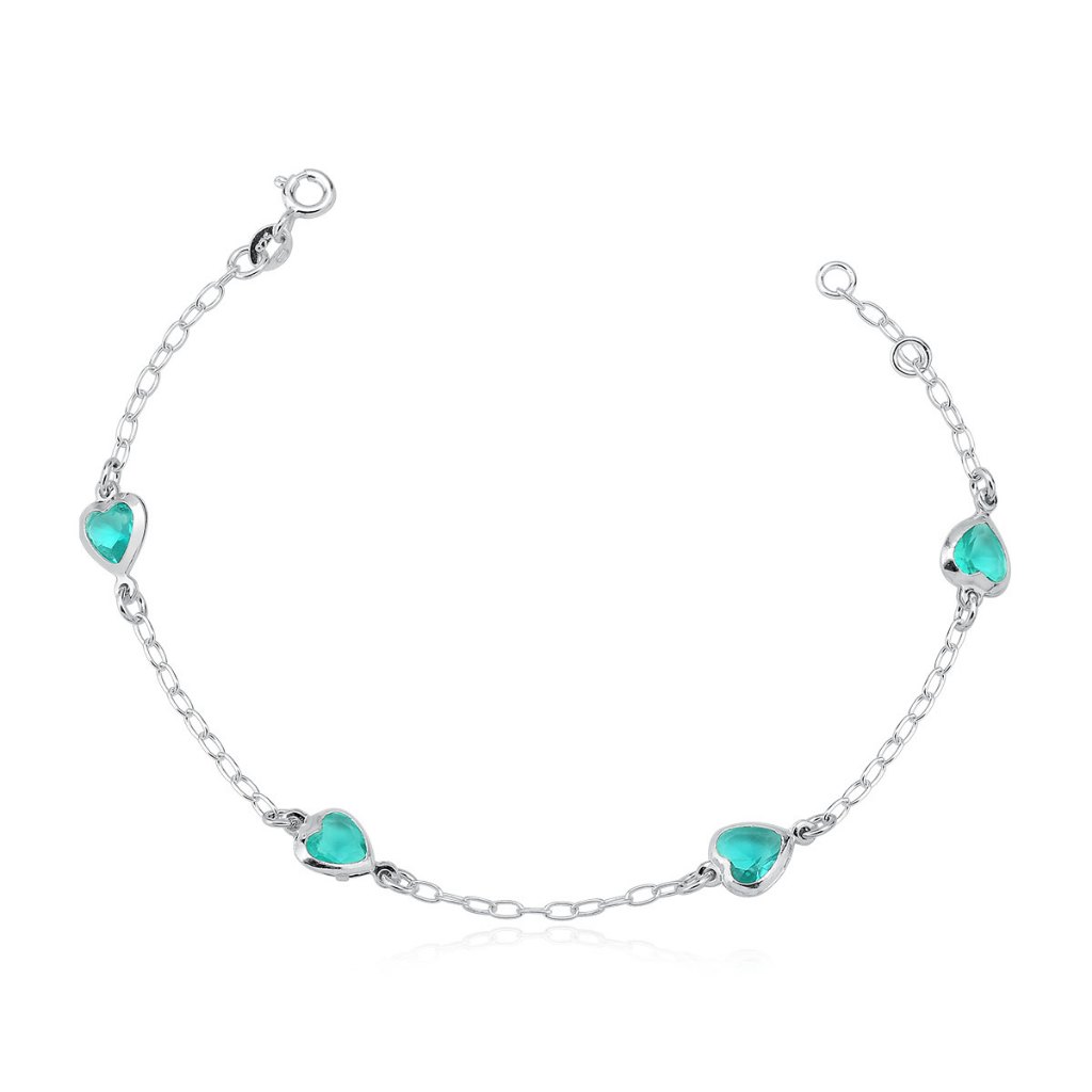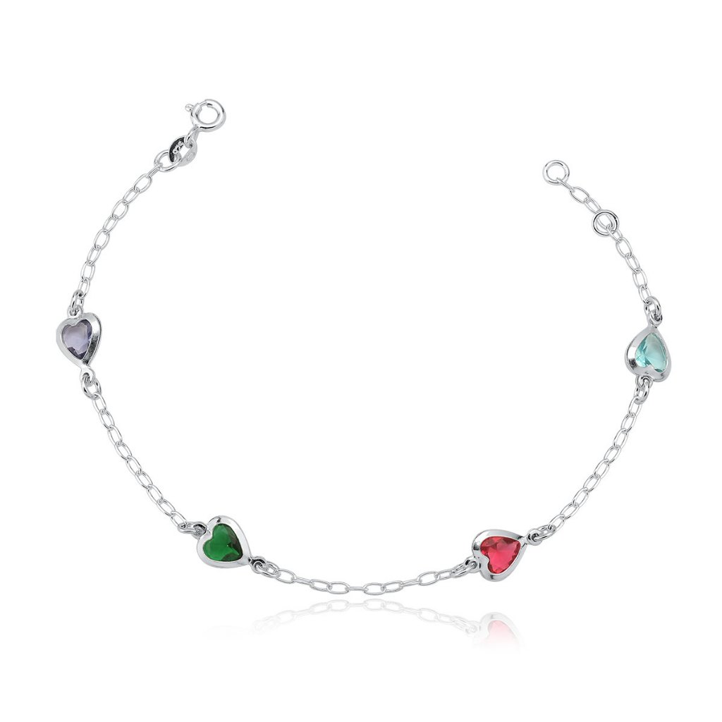 Pulseira Feminina de Prata 925 Coração Cravejado com Zircônia | Diversas Cores