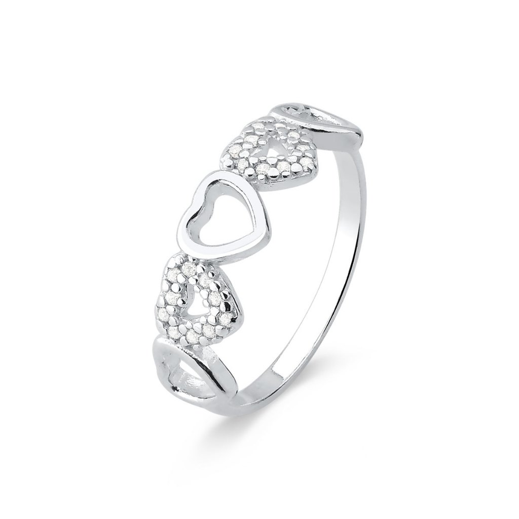 Anel de Prata 925 Corações Lisos e com Zircônias