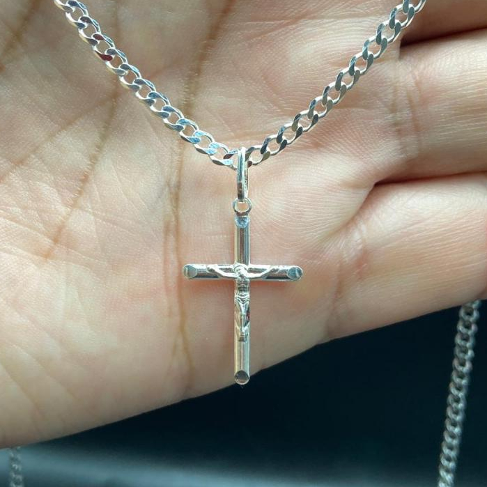 Cordão Masculino Com Pingente Crucifixo De Prata 925 Grumet