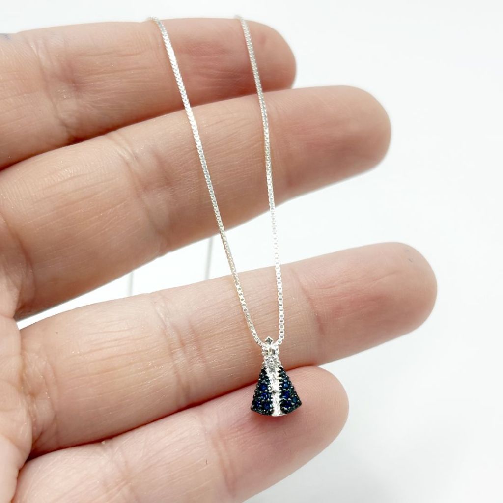 Colar Nossa Senhora Aparecida de Prata Legítima 925 + Caixinha para Presente