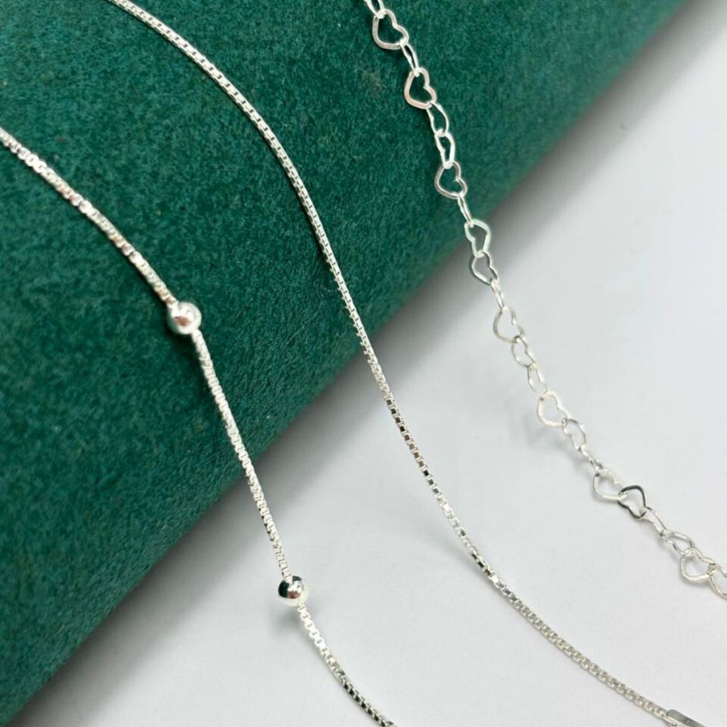 Kit 3 Pulseiras Prata 925 Bolinha Coração e Veneziana