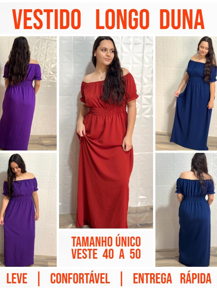 Vestido Longo Duna - Tamanho unico - Veste de 40 a 50.