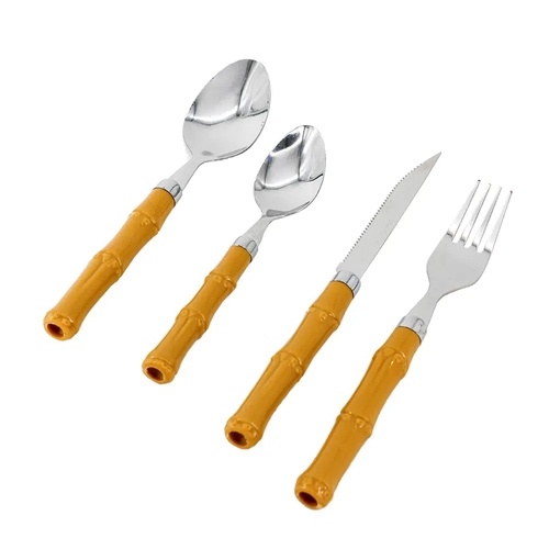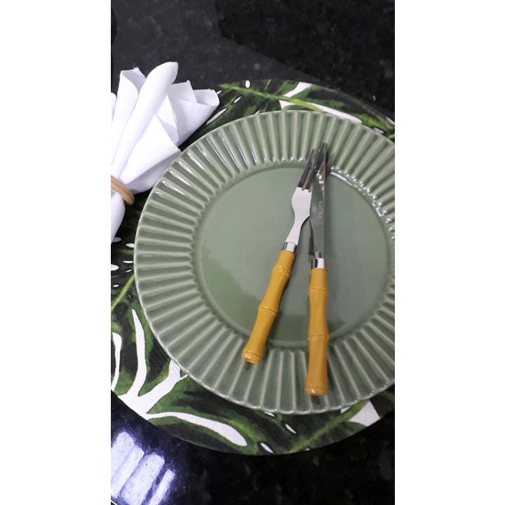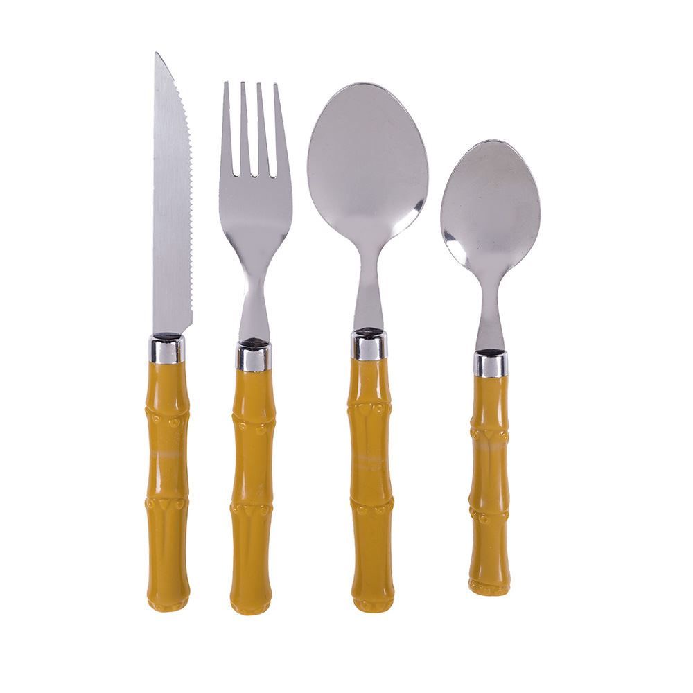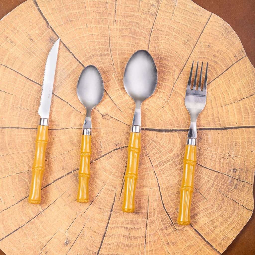 Faca, Garfo, Colher, Espátula Inox e Cabo Plástico Tipo Bambu (unidade) Mesa Posta