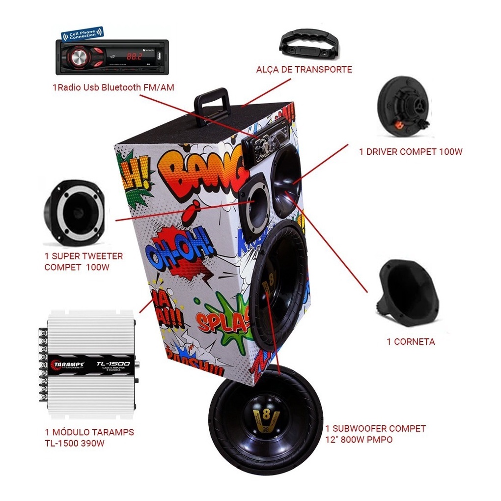 Caixa Residencial Bob Esponja de 12 Polegadas Trio Amplificada Ativa 110/220v Bluetooth Usb Radio Fm