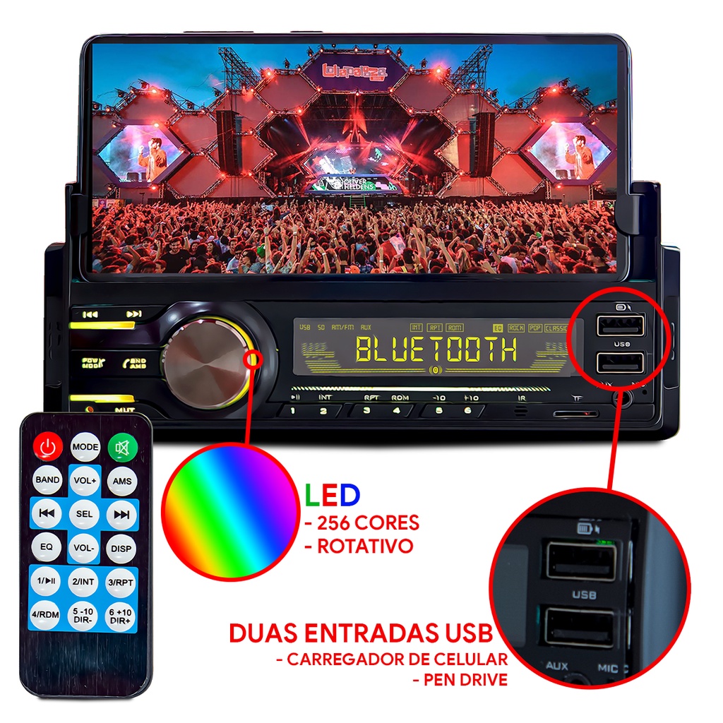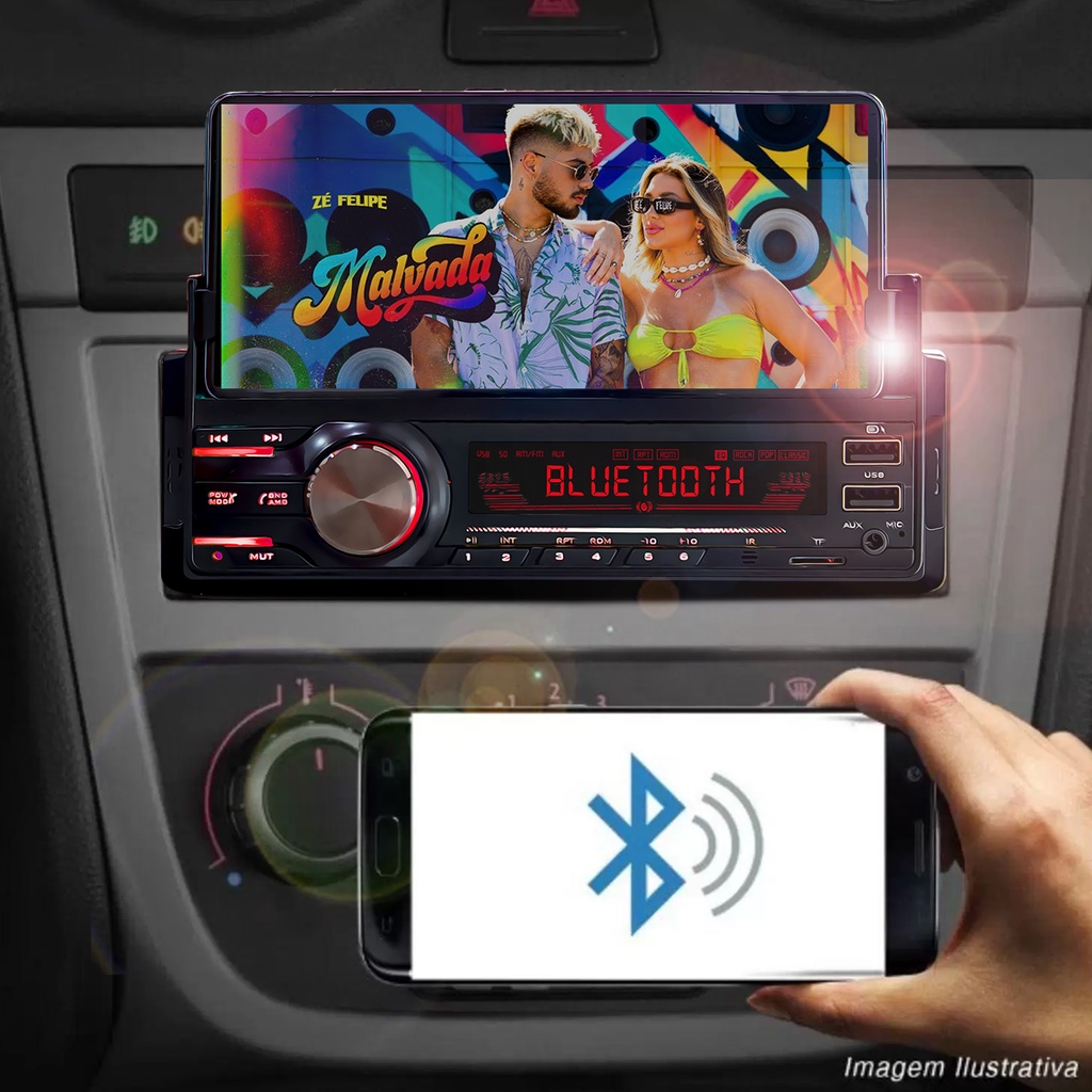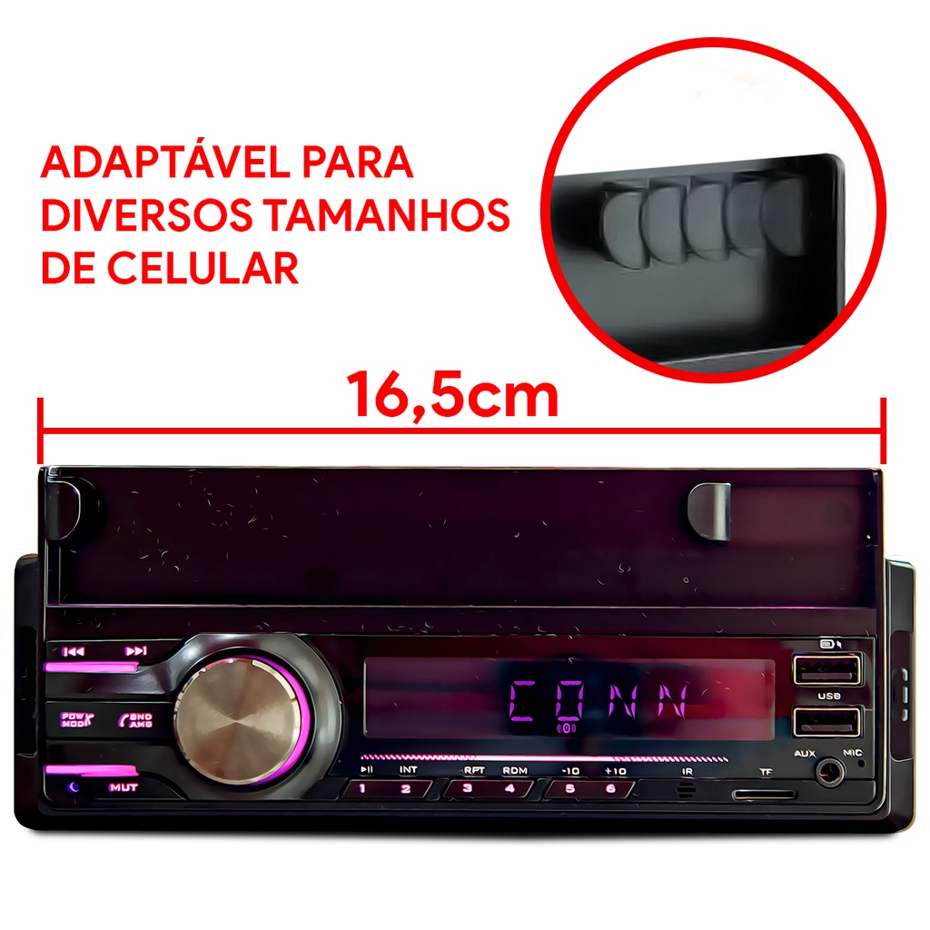 Radio Auto Radio Carro Fm Suporte Celular Usb Sd Bluetooth Som automotivo