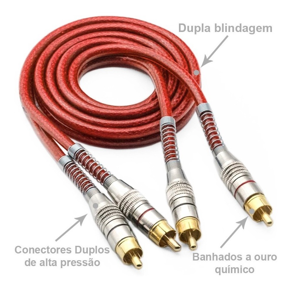 Kit 4 Cabos Rca 1 Metro Tech One Blindado Vermelho