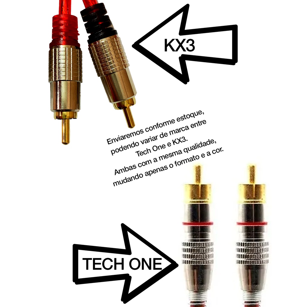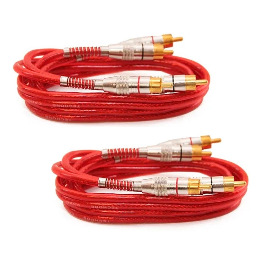 Kit 2 Cabos Rca 1 Metro Dupla Blindagem Blindado Com Cobre 1m 5mm Vermelho