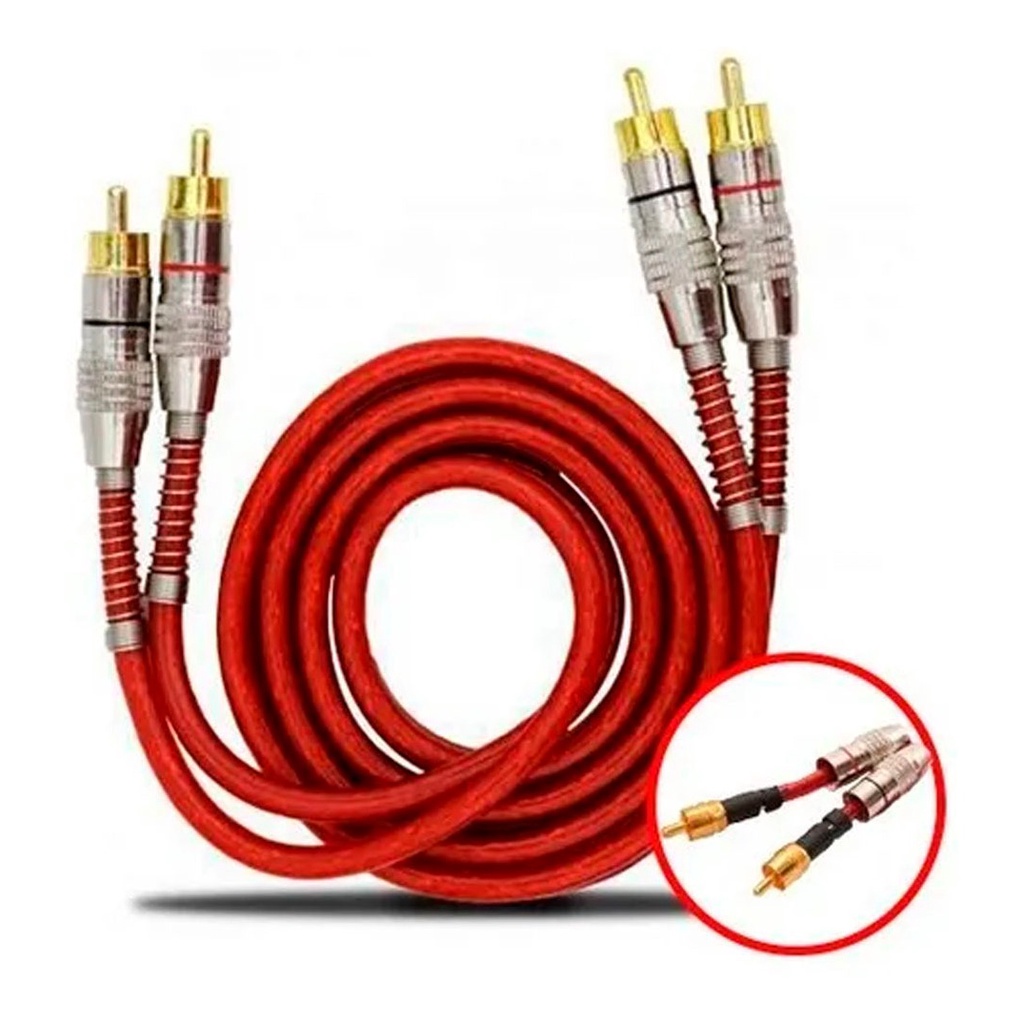 Kit 3 Cabos Rca 1 Metro Dupla Blindagem 1m 5mm Vermelho