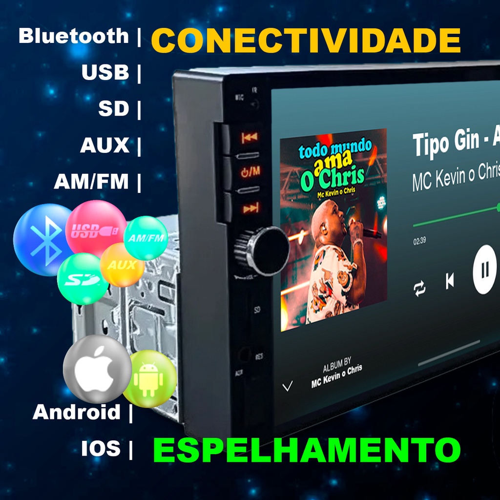 mp5 multimidia 1 / 2 din bluetooth + usb + espelhamento