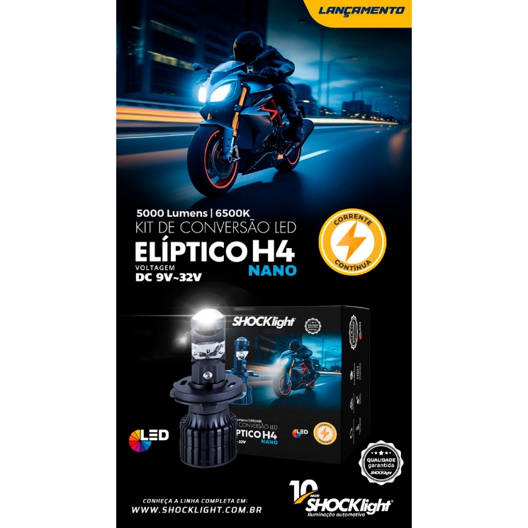 Lampada Farol Led Moto H4 Eliptico Projetor 6500k Shocklight