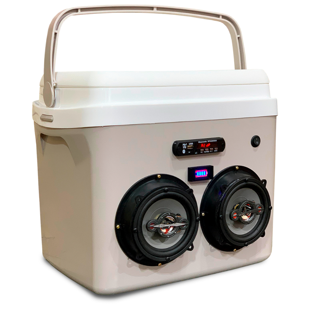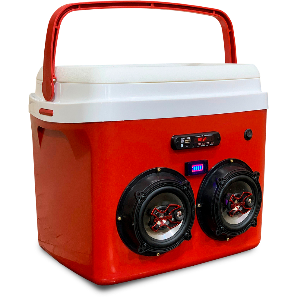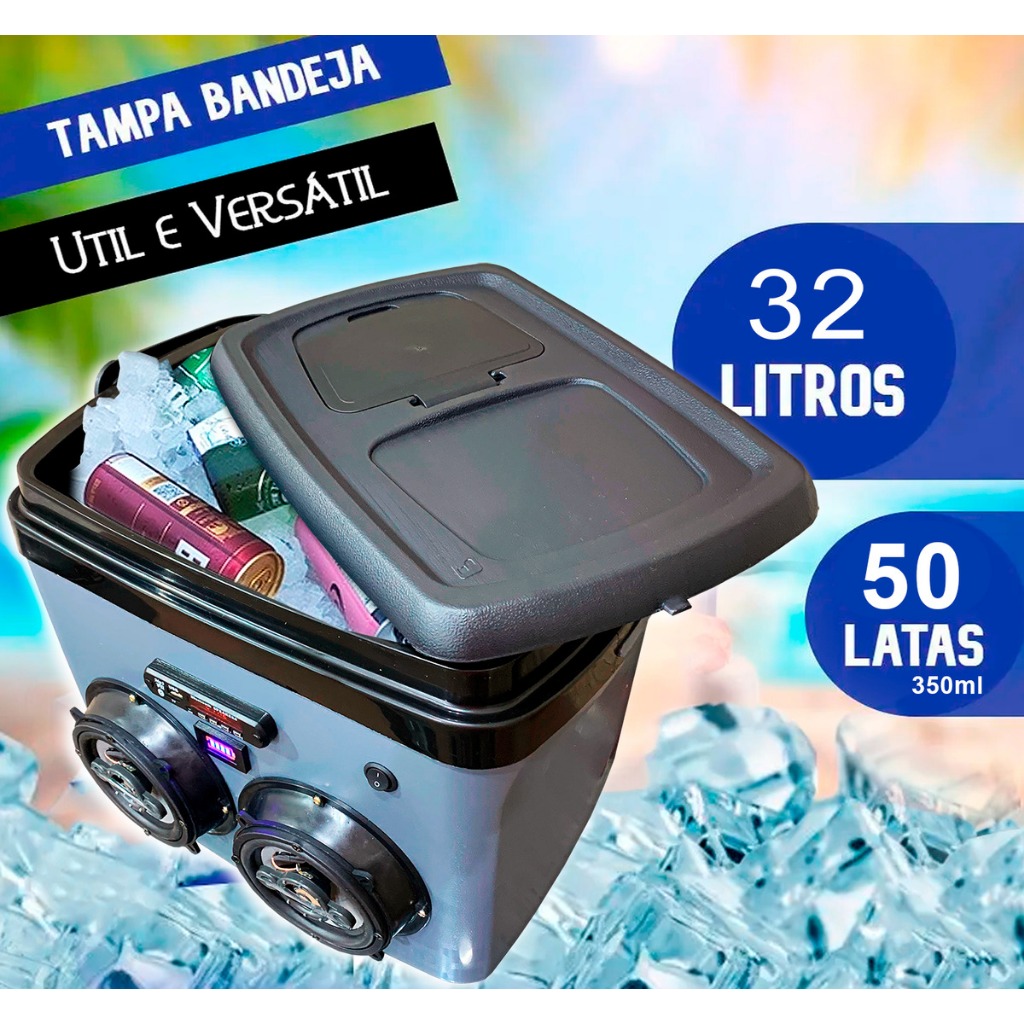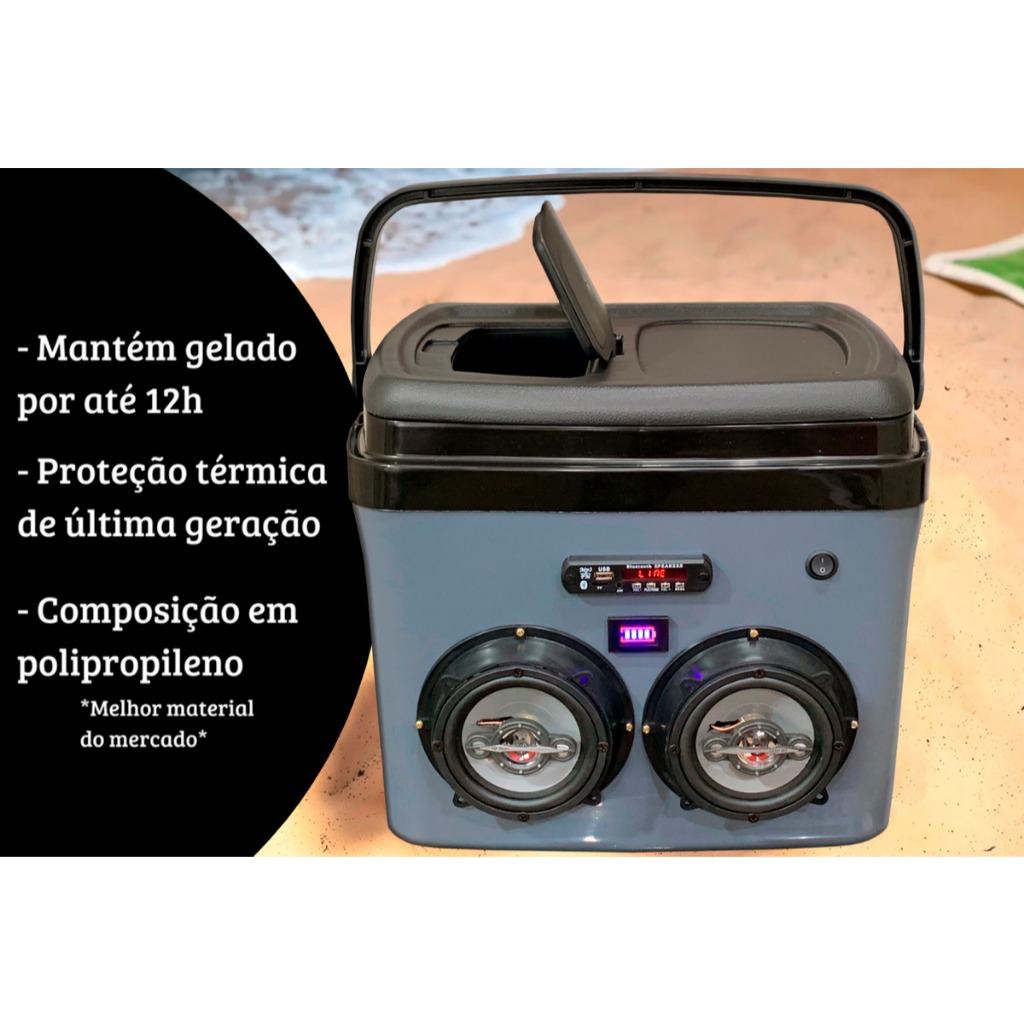 Caixa Termica 32l Cooler Tampa Alça Som Bluetooth Usb - Cores Vermelho Azul Bege Cinza