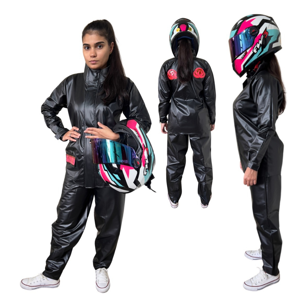 Capa de Chuva Conjunto Completo Bolso Pvc Impermeável Para Motoqueiro Adulto - Feminina Masculino