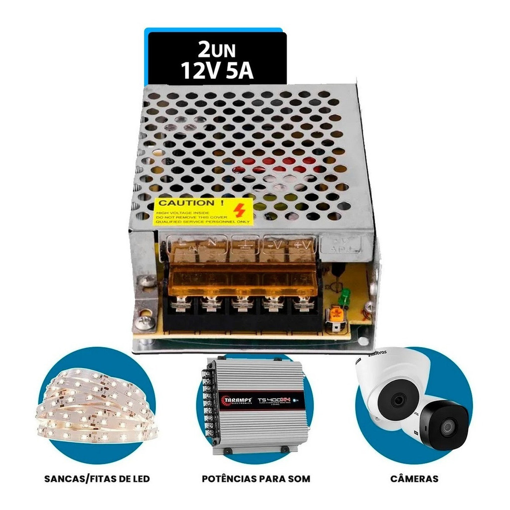 Fonte Chaveada 60w 12v 5a Led Cftv Câmera Dvr Bivolt Colméia