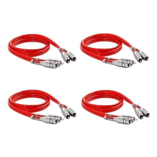 Kit 4 Cabos Rca Stetsom 1 Metro Blindado Banhado Prata Som
