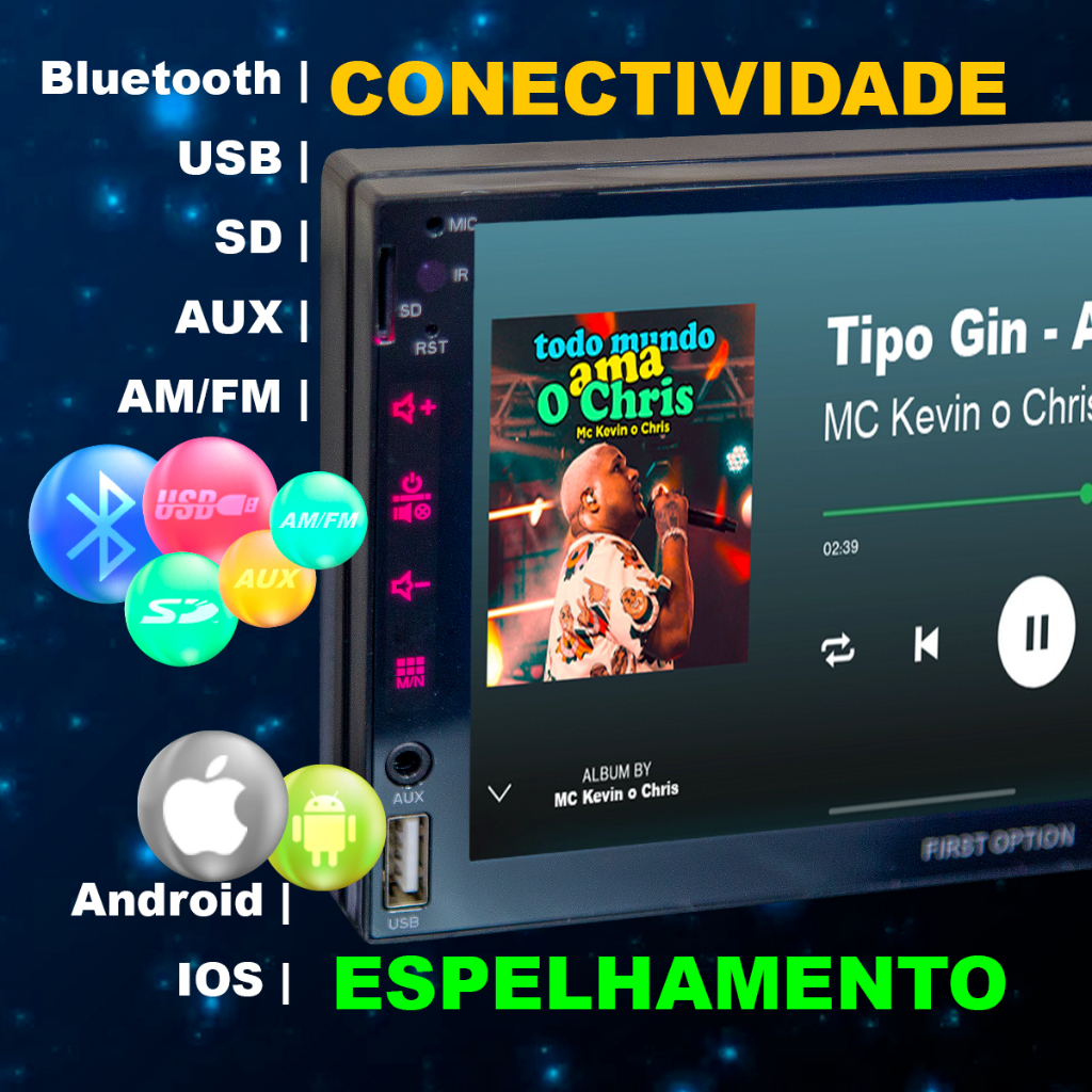 Central Multimídia 1 Din Mp5 Tela 7 Bluetooth Usb Camera Ré
