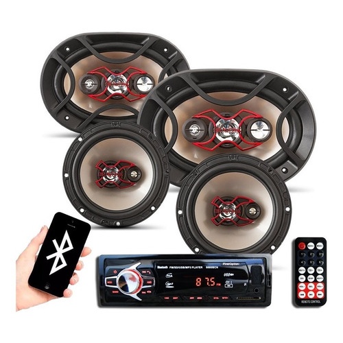 Kit Som Automotivo Player Bluetooth Falante Bravox 6 + 6x9