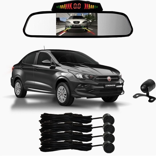 Sensor De Ré + Espelho Camera Ré Fiat Cronos Preto