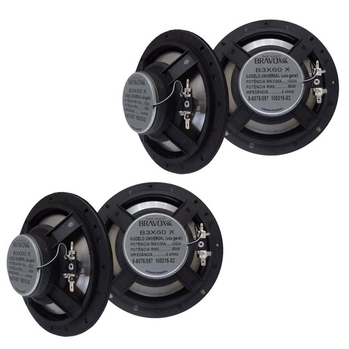 Kit 4 Alto Auto Falantes Bravox B3x60x + 6 Polegadas Som