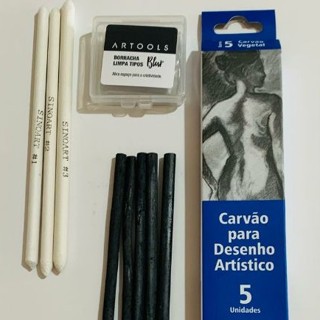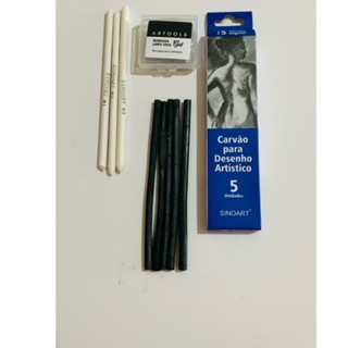 Kit Desenho Carvão + Esfuminho Sinoart + Limpa Tipos