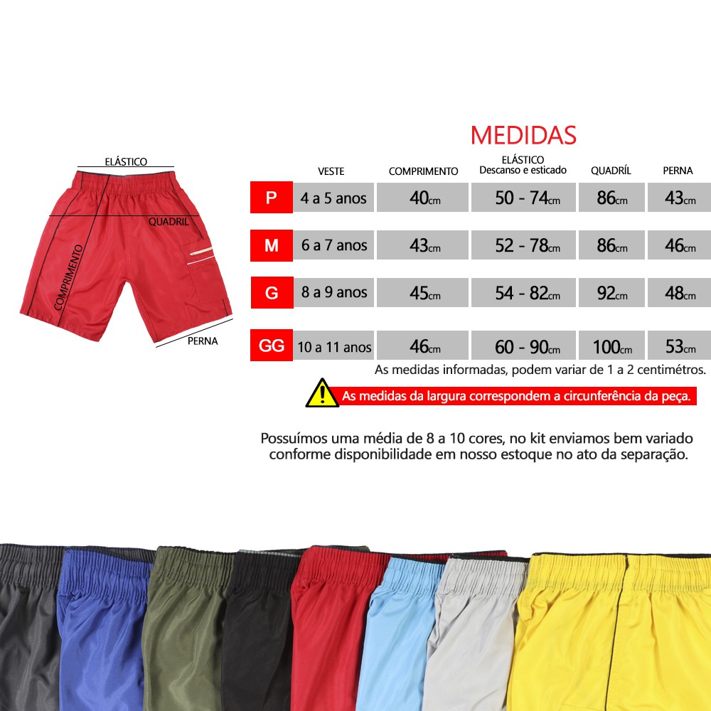 Kit 2 Short Menino Tactel Bolso Liso Praia Infantil Velcro