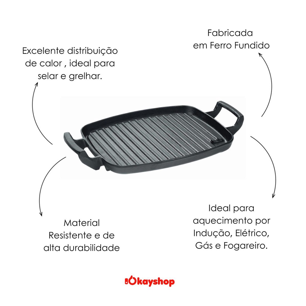 Chapa Grill Ferro Fundido Panela Mineira Alça Ferro (30x24cm)
