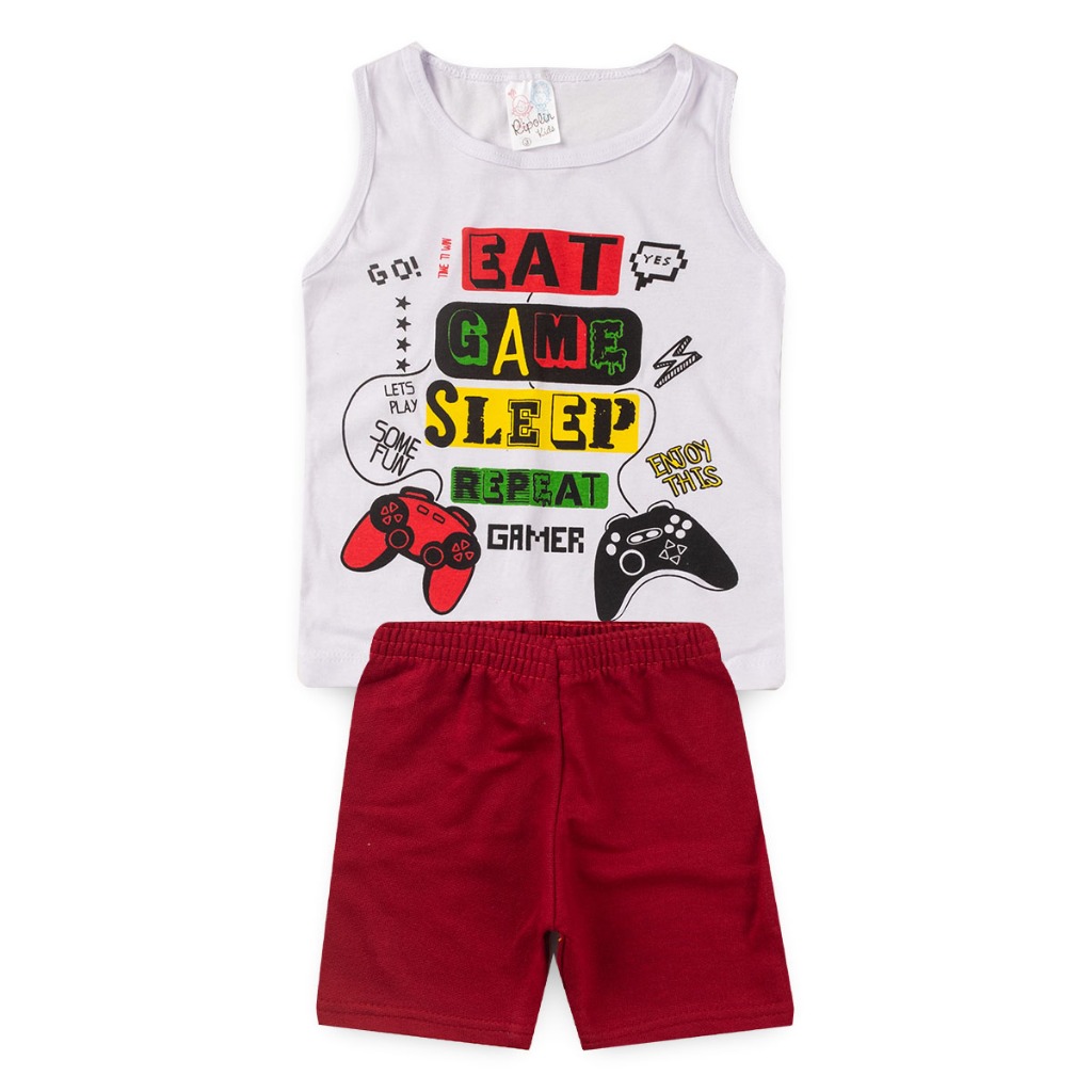 kit 8 Peças São 4 conjuntos masculino infantil juvenil menino regata e bermuda tamanho 1 ao 10