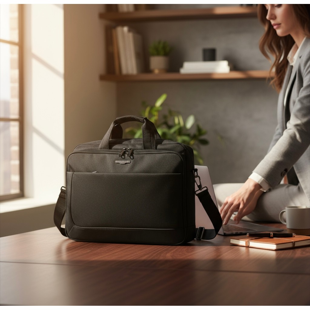 Meij Bolsa Pasta Executiva para Notebook com Alça Transversal Grande em Nylon Feminina e Masculina