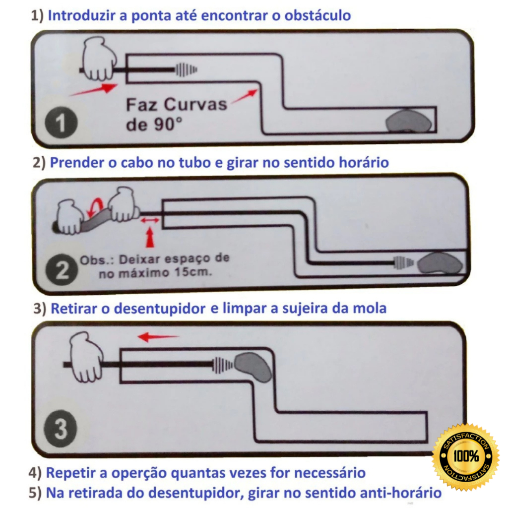 Desentupidor De Pia Com 3/5 Metros Cano Mola Flexível Tubulação Ralo Tanque Tufão Pia Banheiro Cozinha Quintal Cano