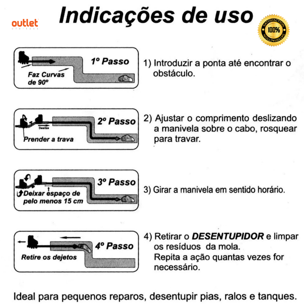 Desentupidor De Pia Cano 5 e 3 Metros Mola Flexível Tubulação Tufão