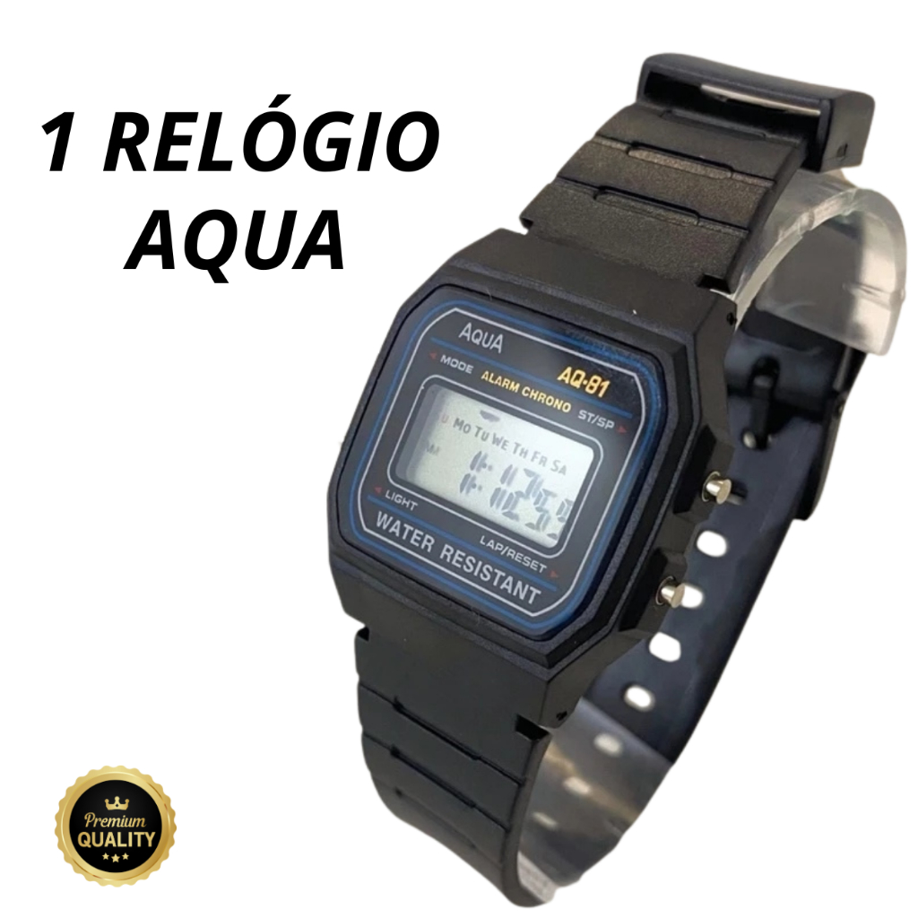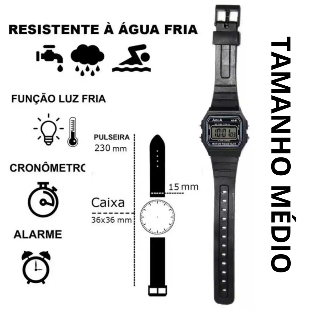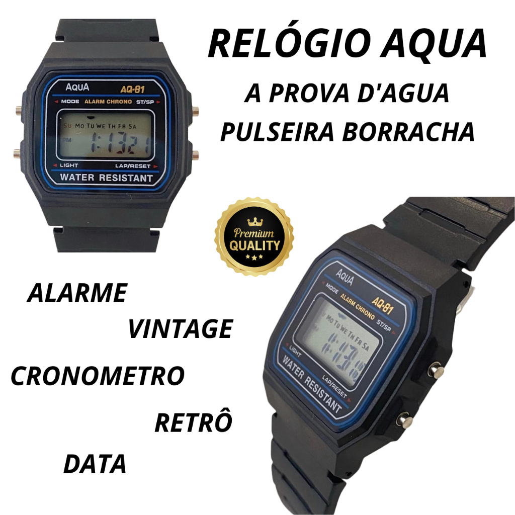 Relógio Retrô Digital Esportivo Aqua Modelo AQ 81 borracha quadrado Unissex Militar Vintage
