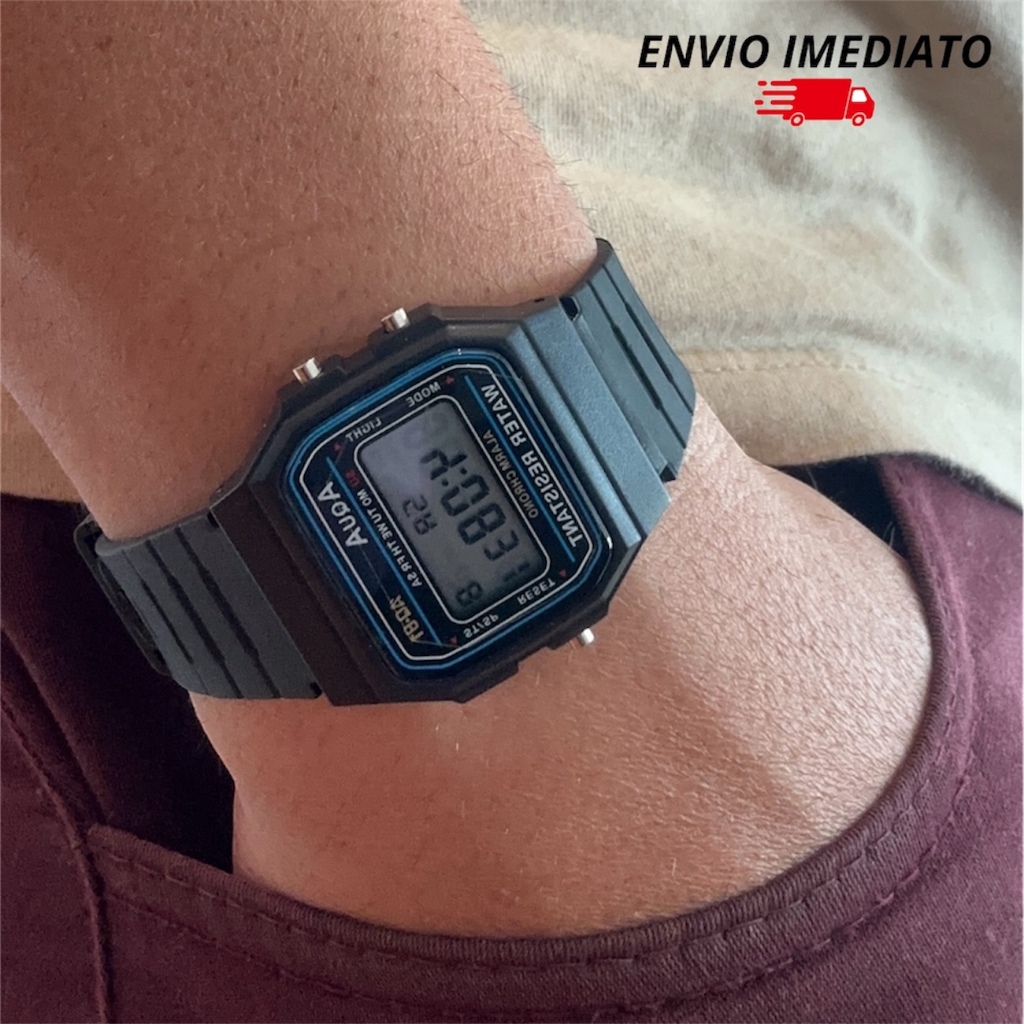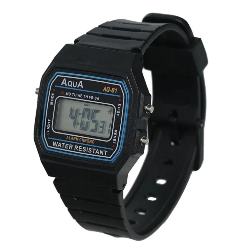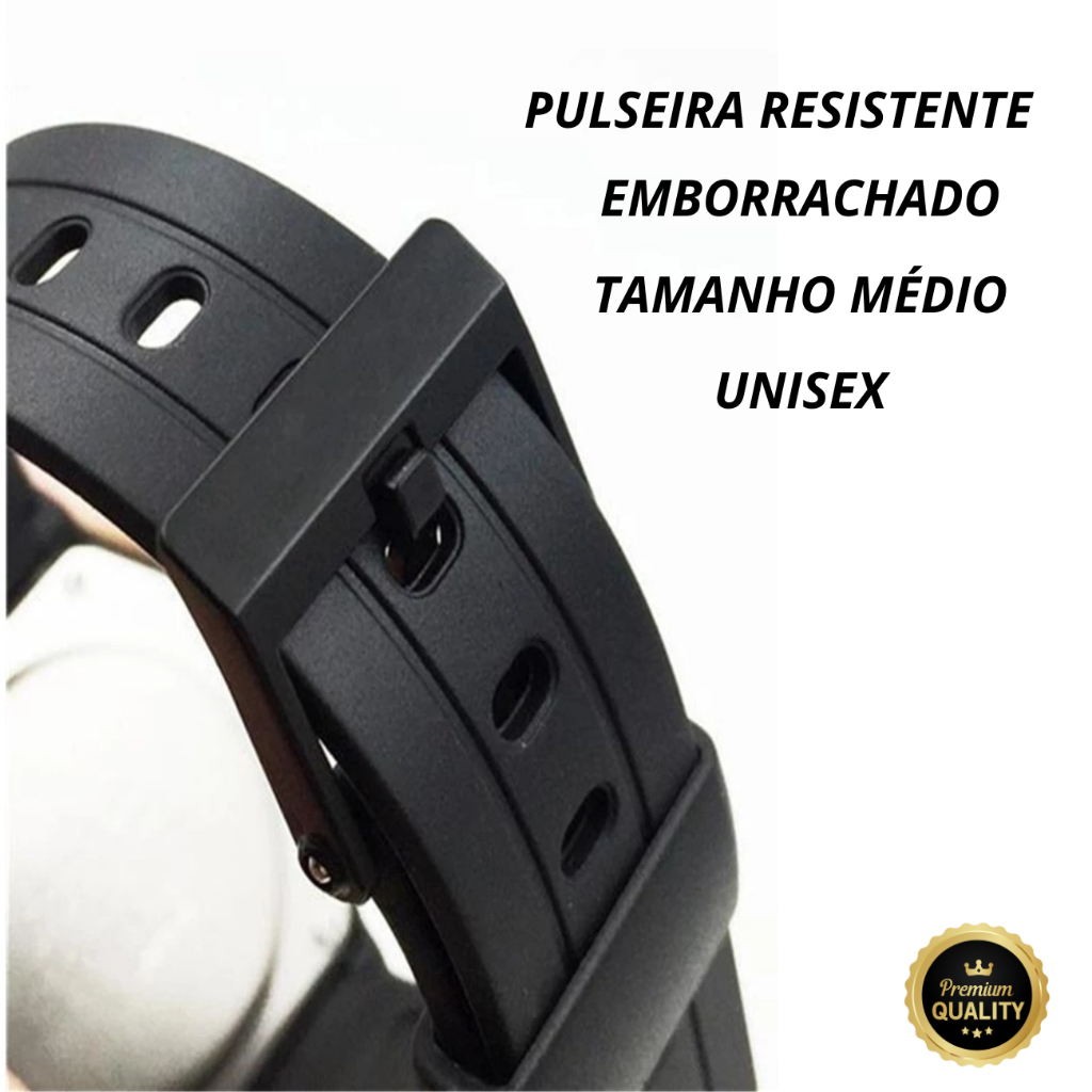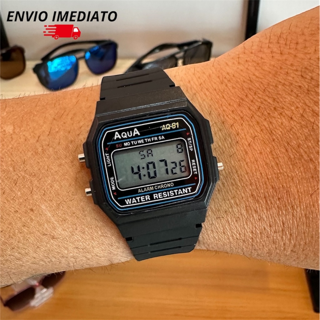 Relógio Retrô Digital Esportivo Aqua Modelo AQ 81 borracha quadrado Unissex Militar Vintage
