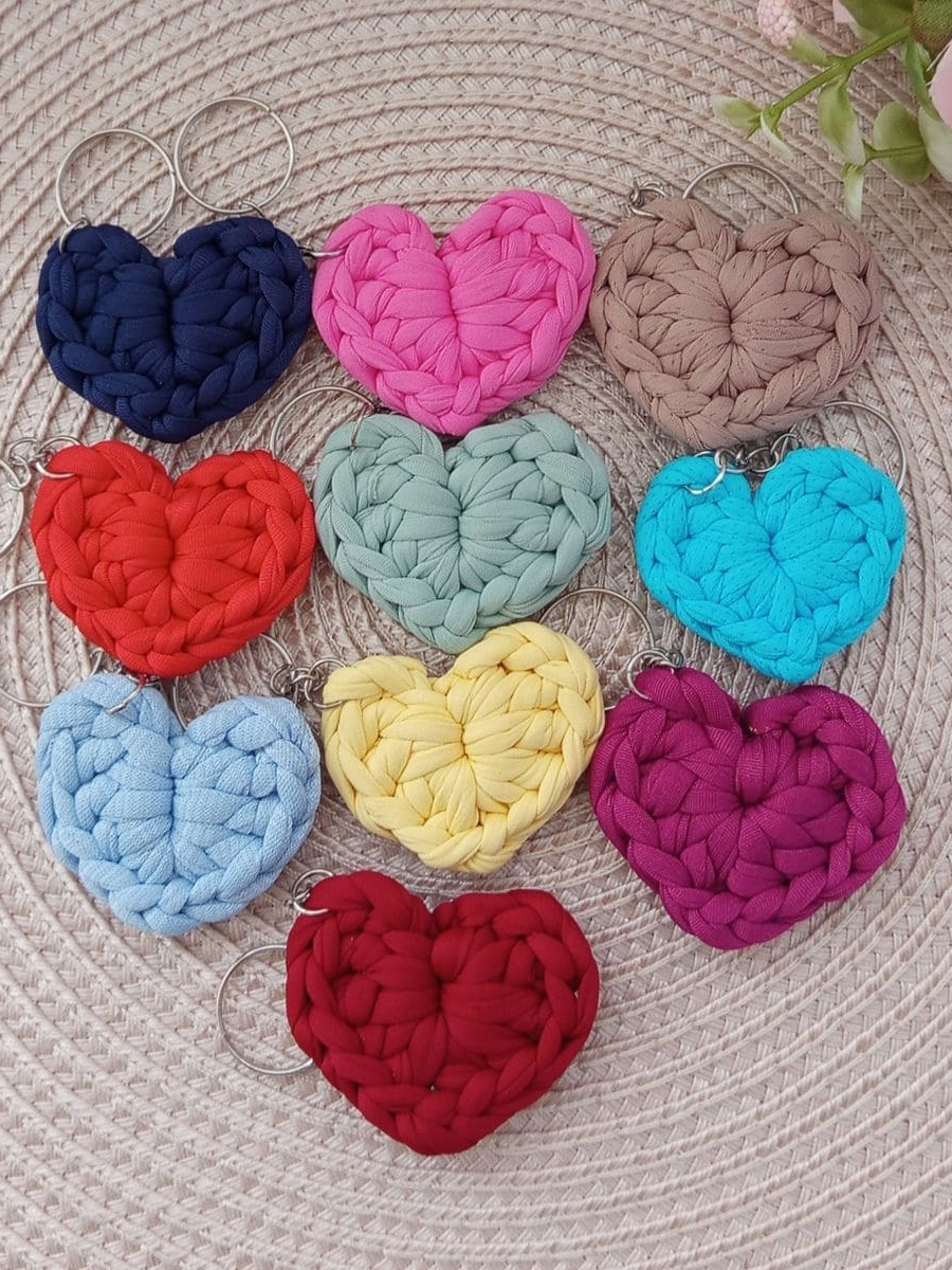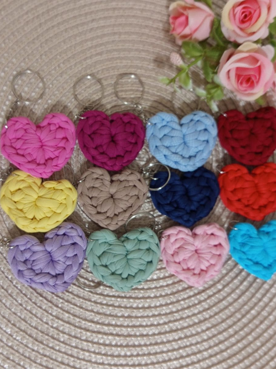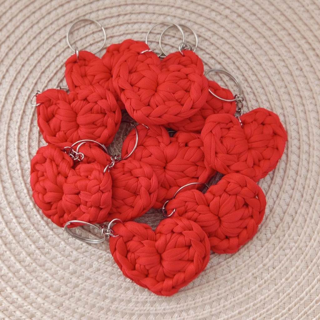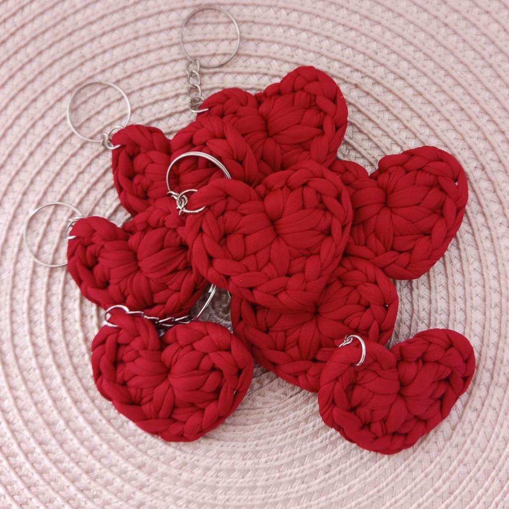 Kit Chaveiros de Coração em Crochê Lembrancinhas Fio de Malha