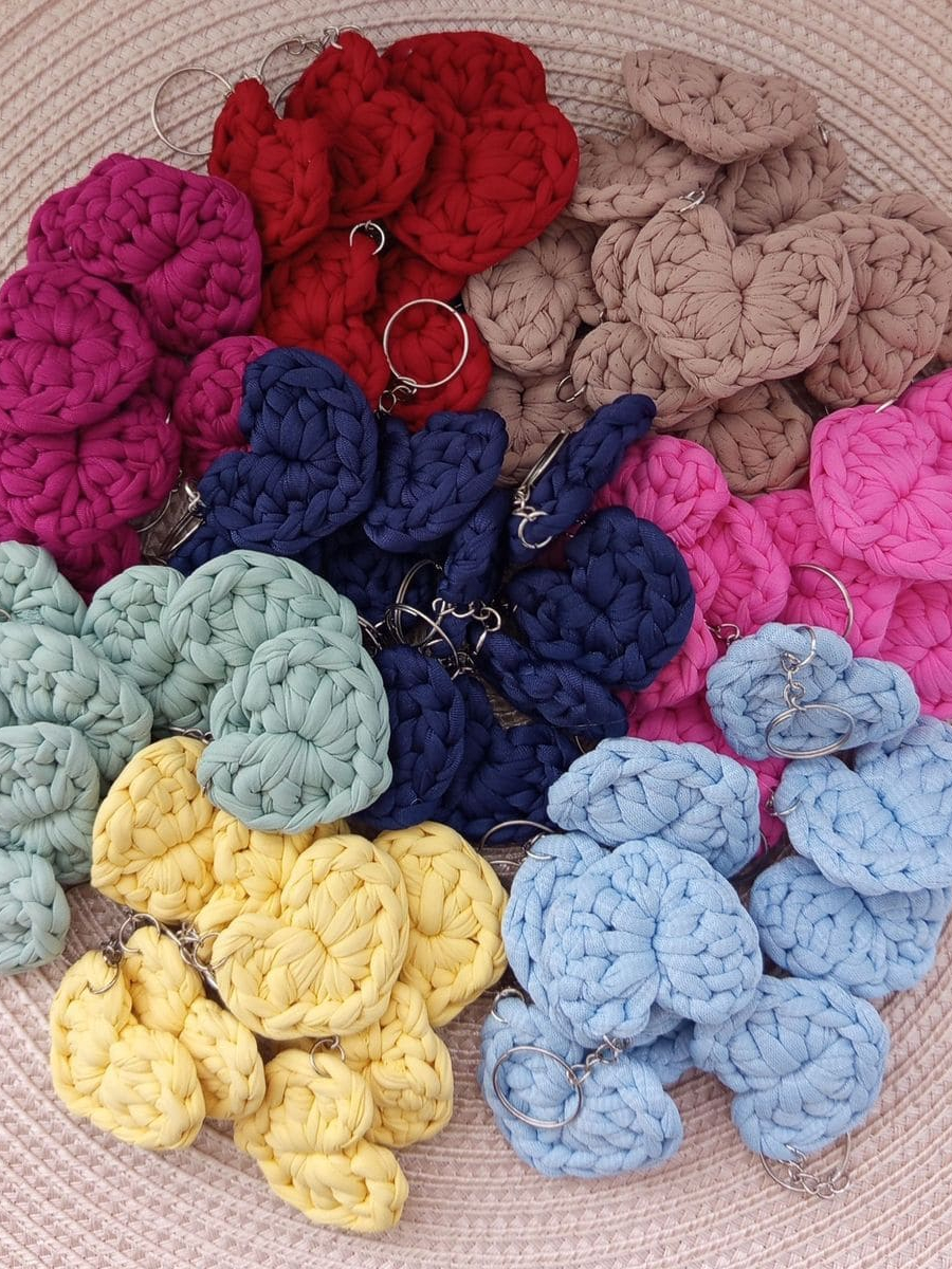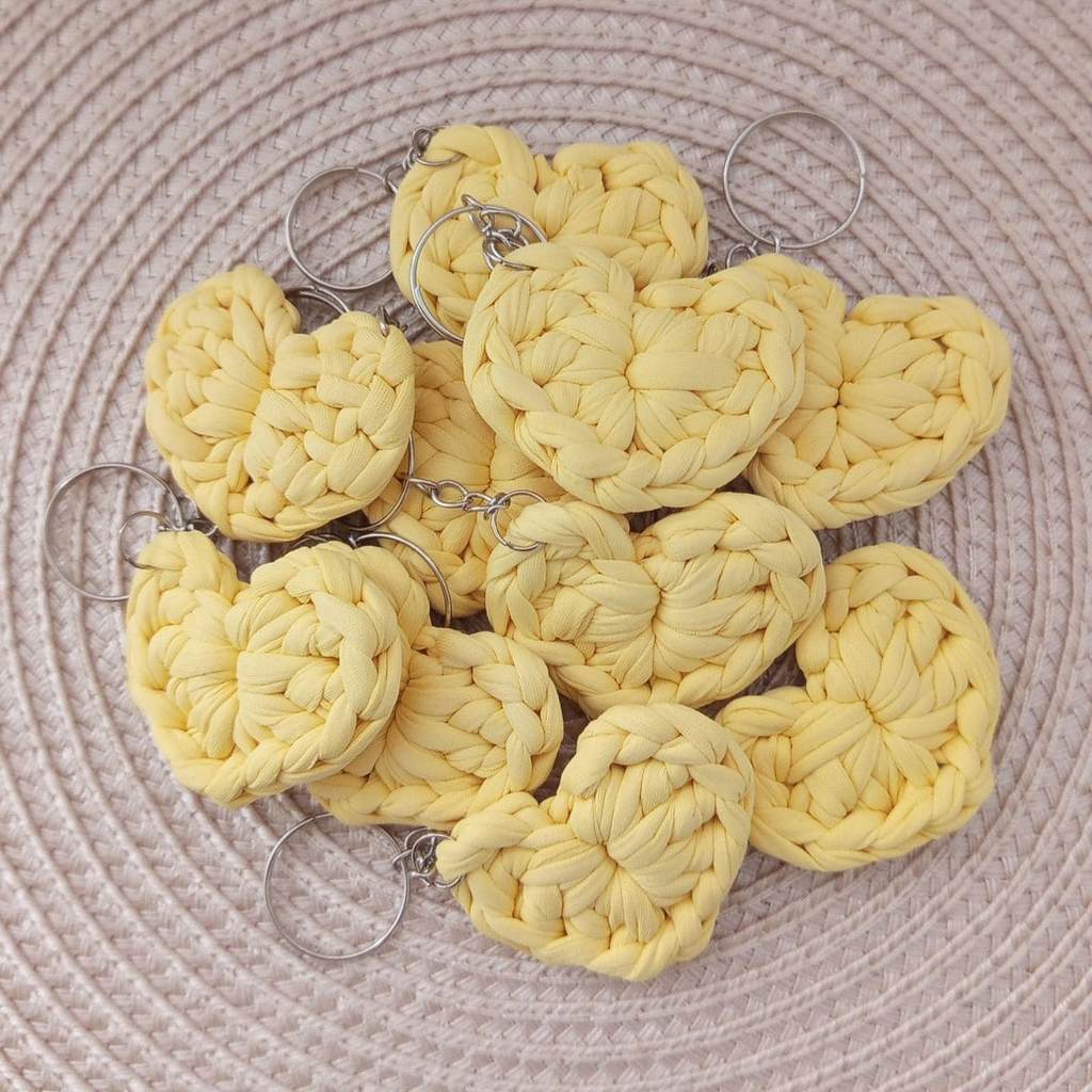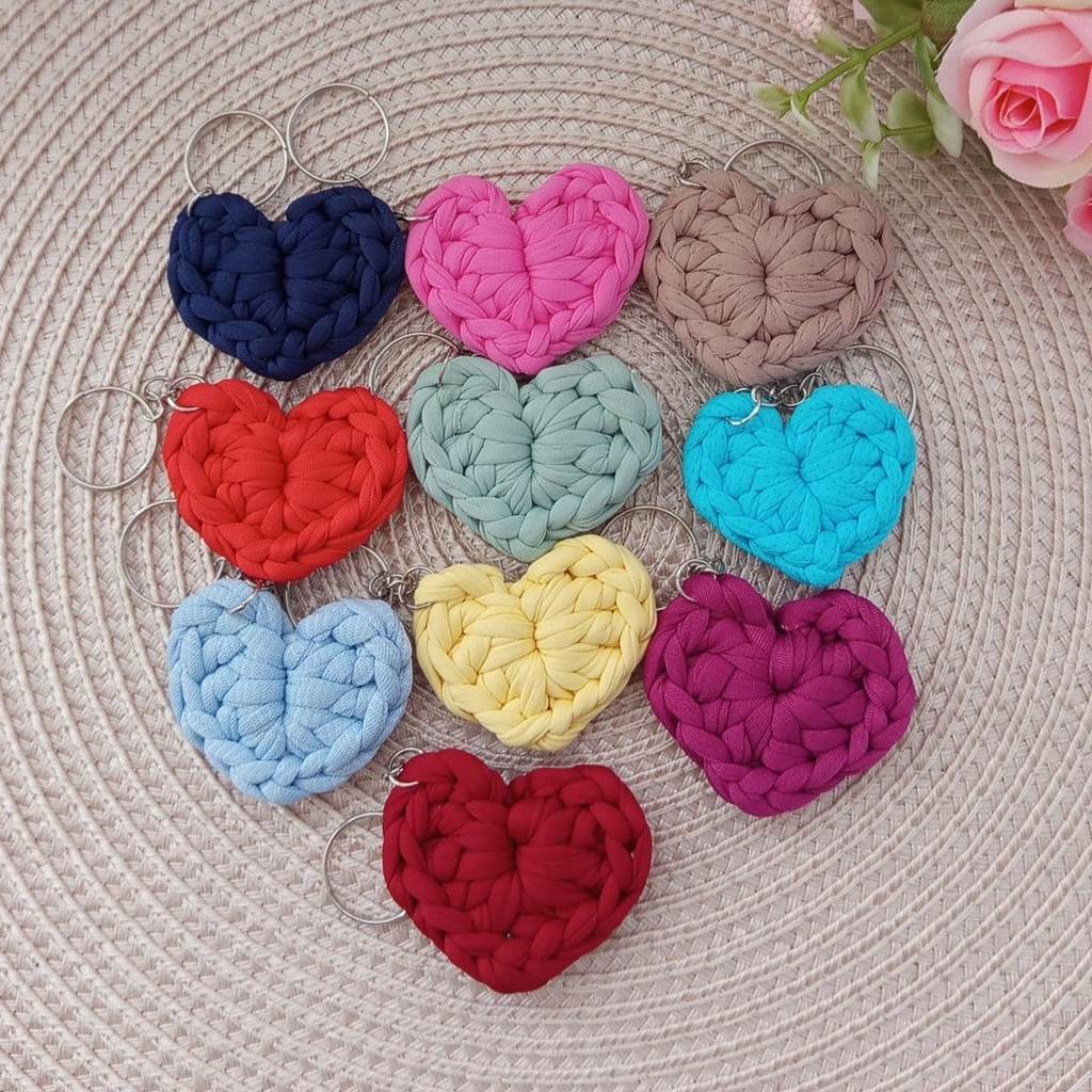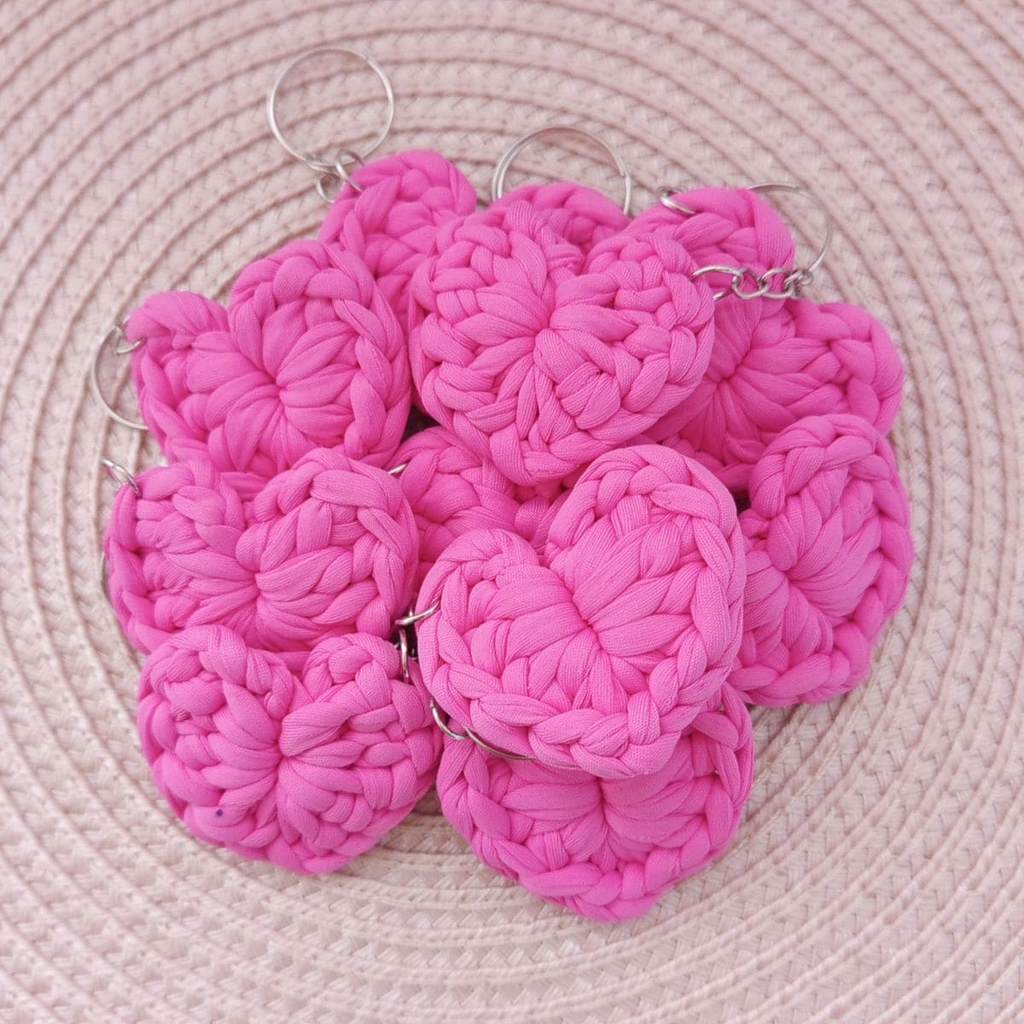 Kit Chaveiros de Coração em Crochê Lembrancinhas Fio de Malha