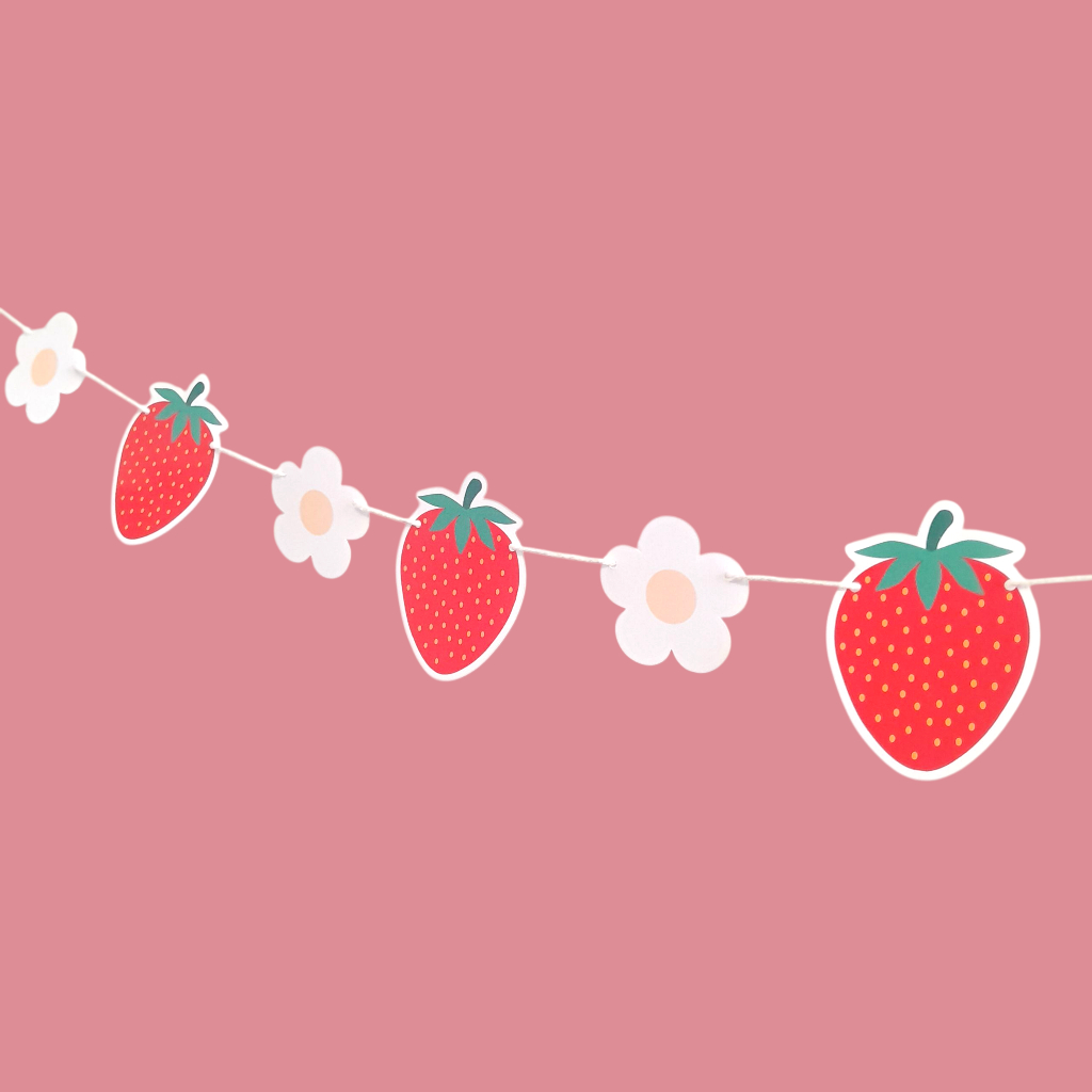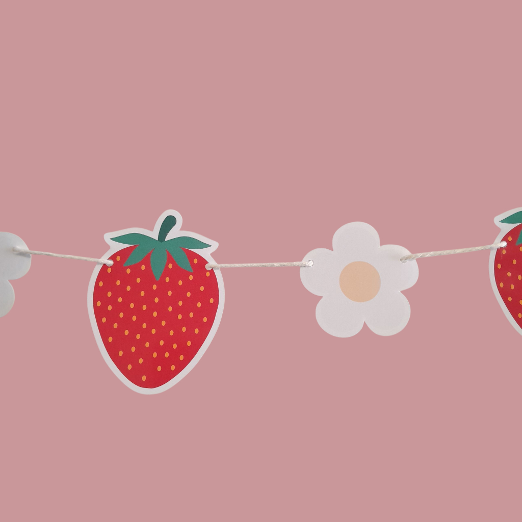 Envio Rápido - Bandeirola de Morango Personalizada - Varal temático para Festa Tema Moranguinho