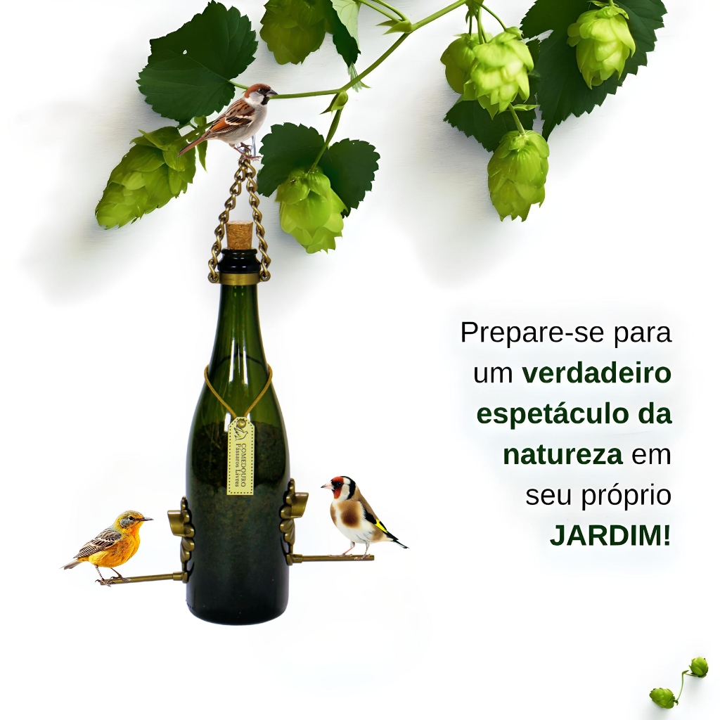 kit 3 comedouros para pássaros livres - Garrafa de Champagne verde