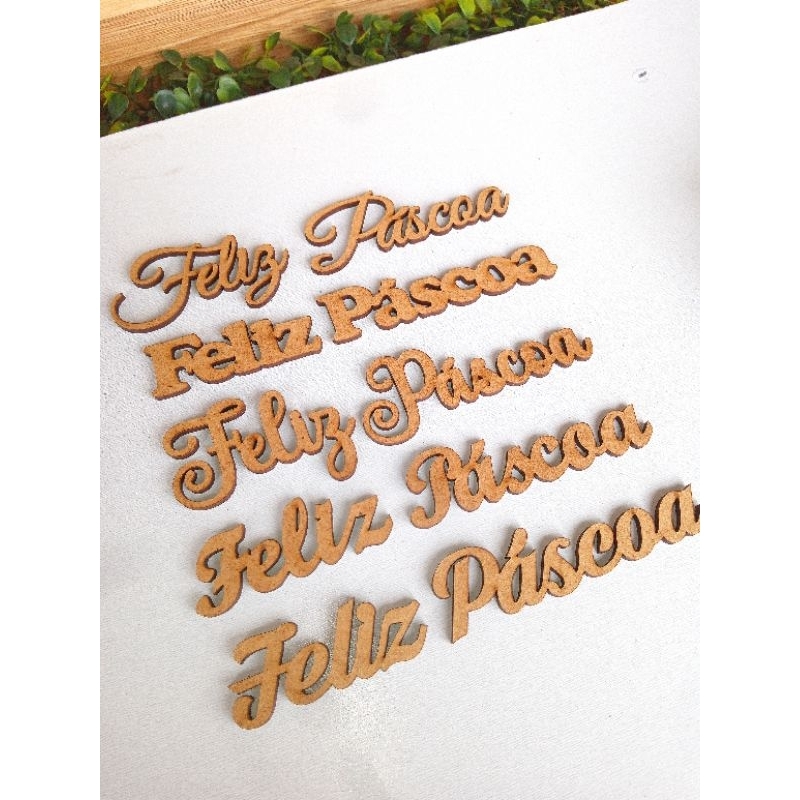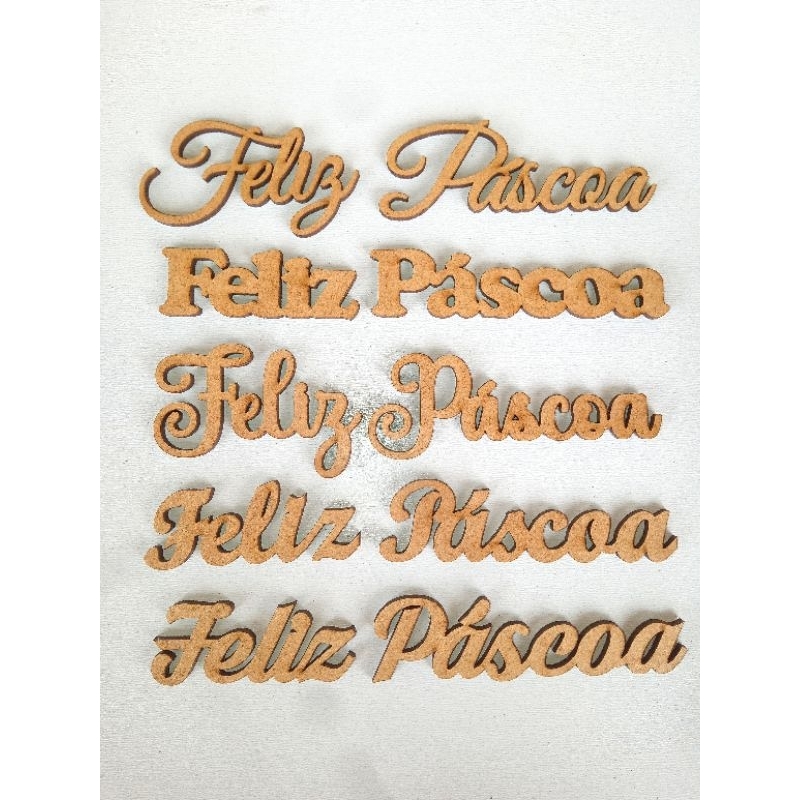 Kit 10 Apliques Feliz Páscoa em mdf cru 3mm