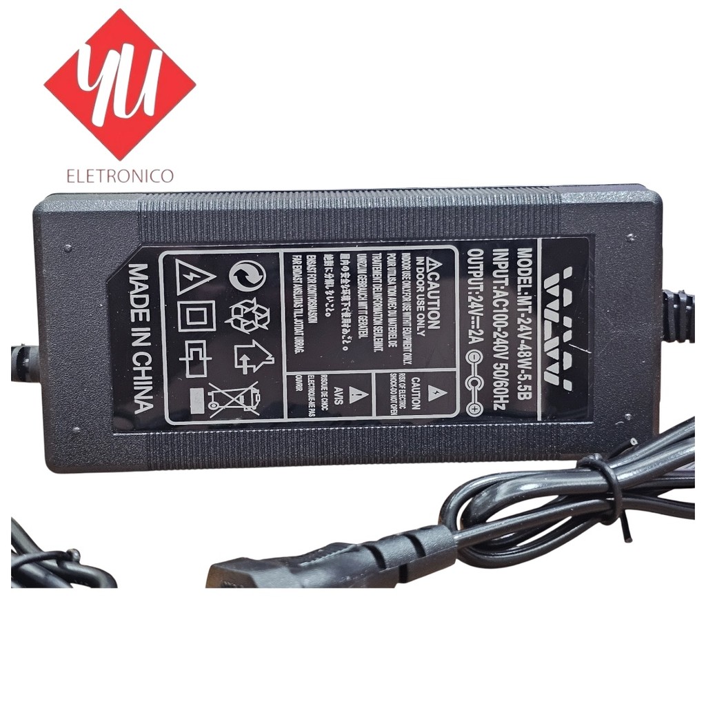 Fonte 24V 2A 48W Bivolt Pino 5.5mm Adaptador de Energia