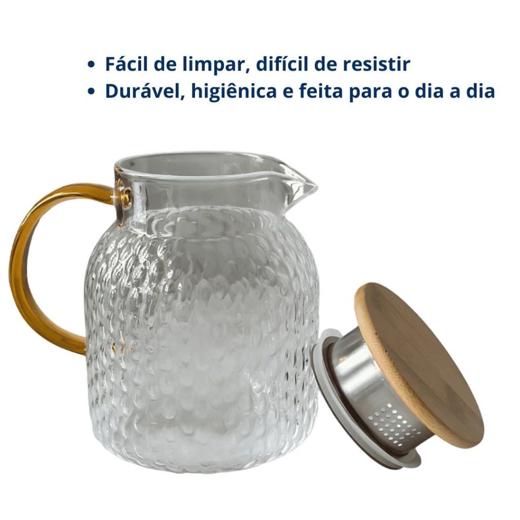 Jarra de Vidro Borossilicato com Tampa de Bambu – 1 Litro