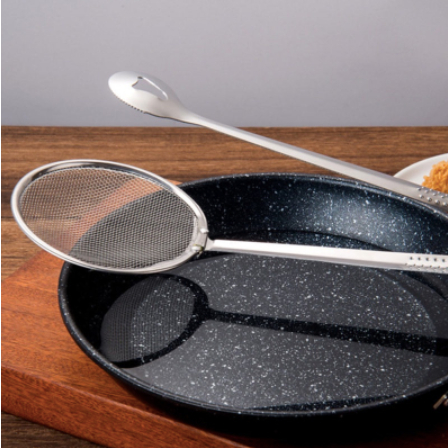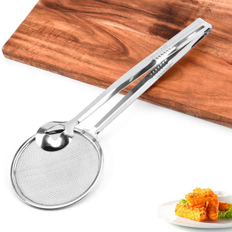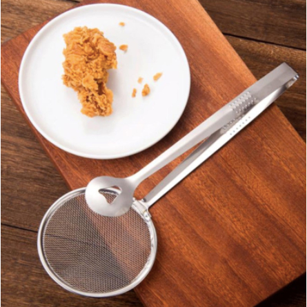 Escumadeira Para Fritura C/pegador Em Inox C/Pinça E Peneira