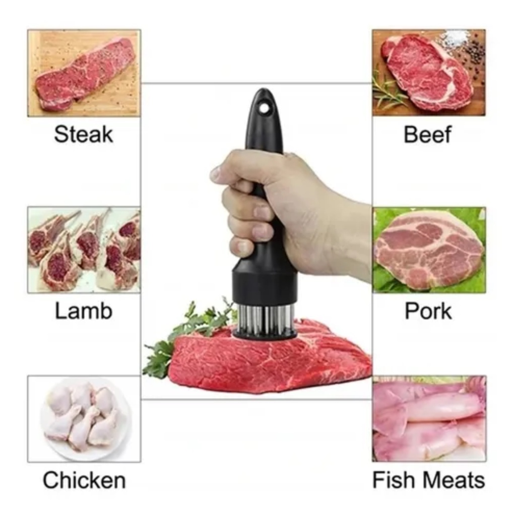 Amaciador Batedor De Carne Bife Com Furador Manual Aço Inox Envio Imediato