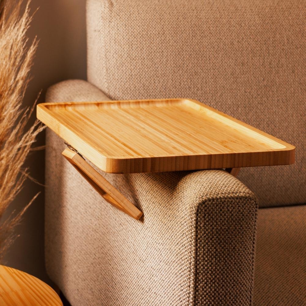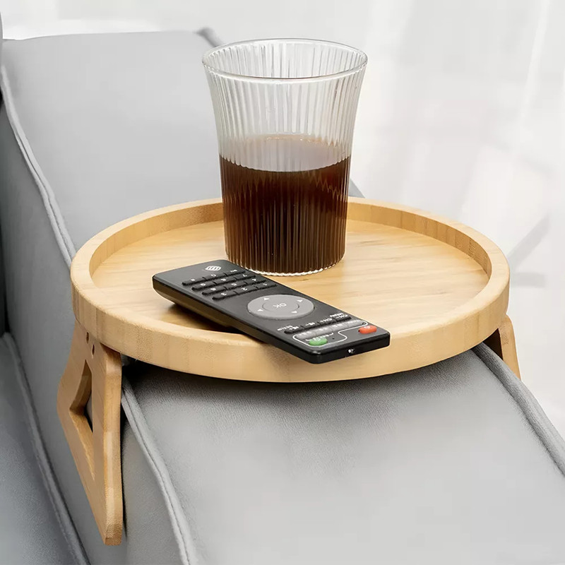 Bandeja Retangular e Redonda de Bambu Dobrável para Braço de Sofá KL-T2023