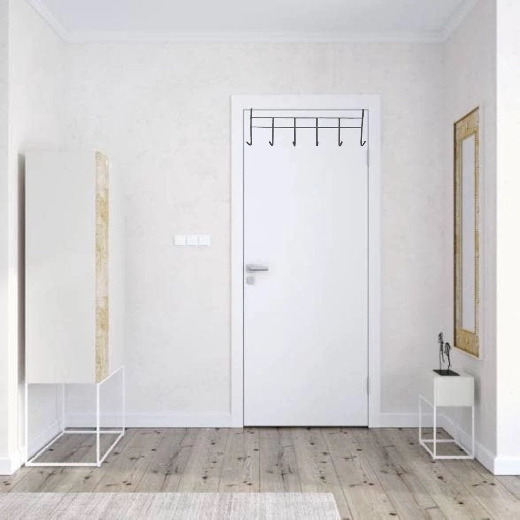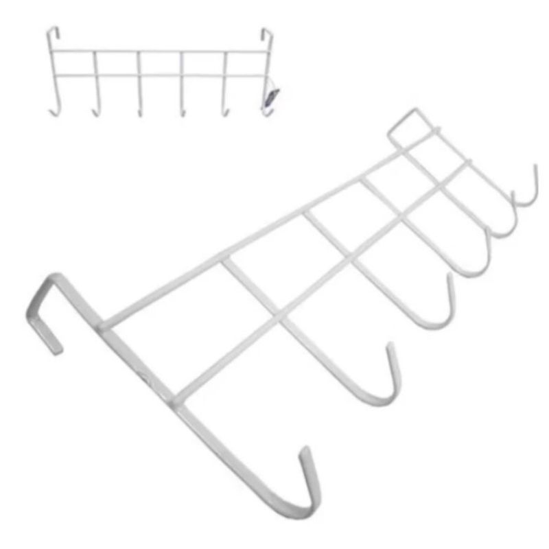 Suporte Cabide com 6 Ganchos Encaixe Porta Pendura Roupas Objetos no Geral WL-2564