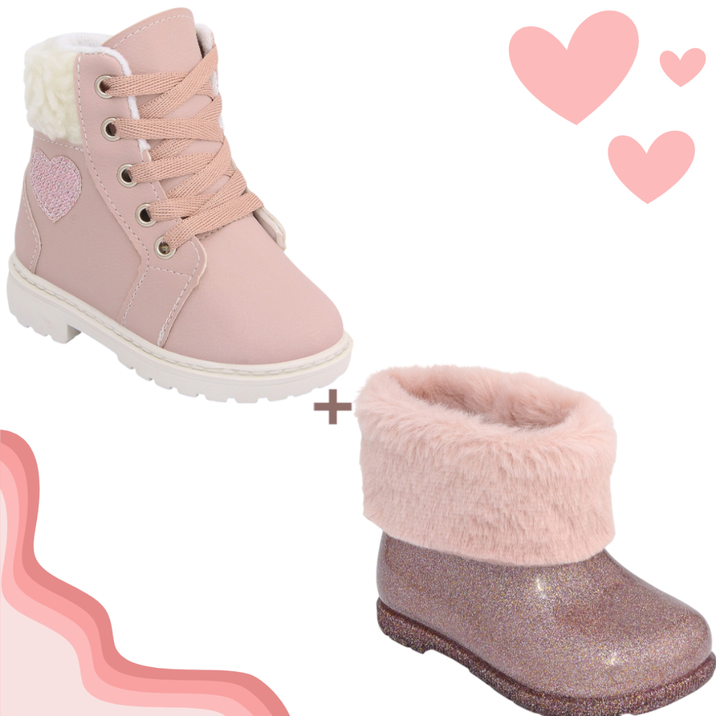 Kit botinha coturno e bota galocha infantil menina feminina lindo