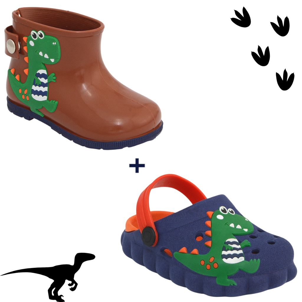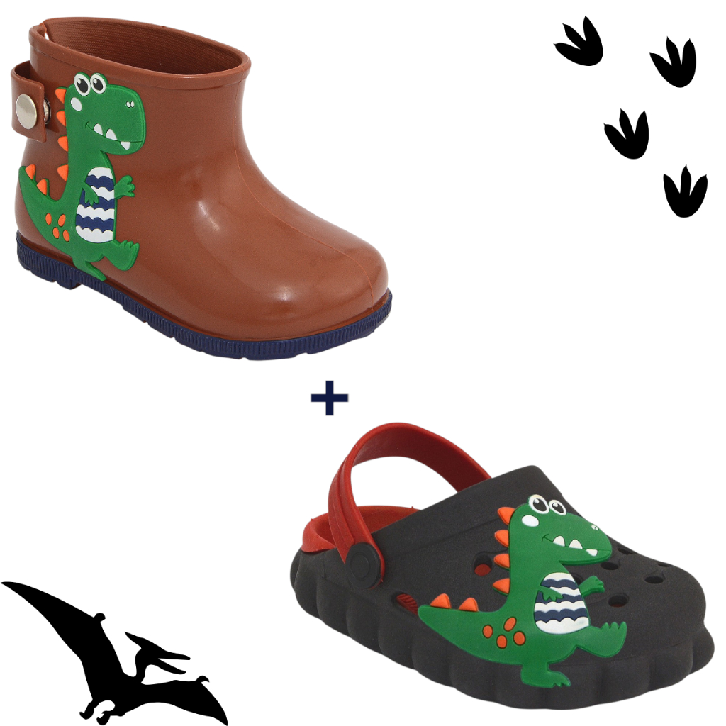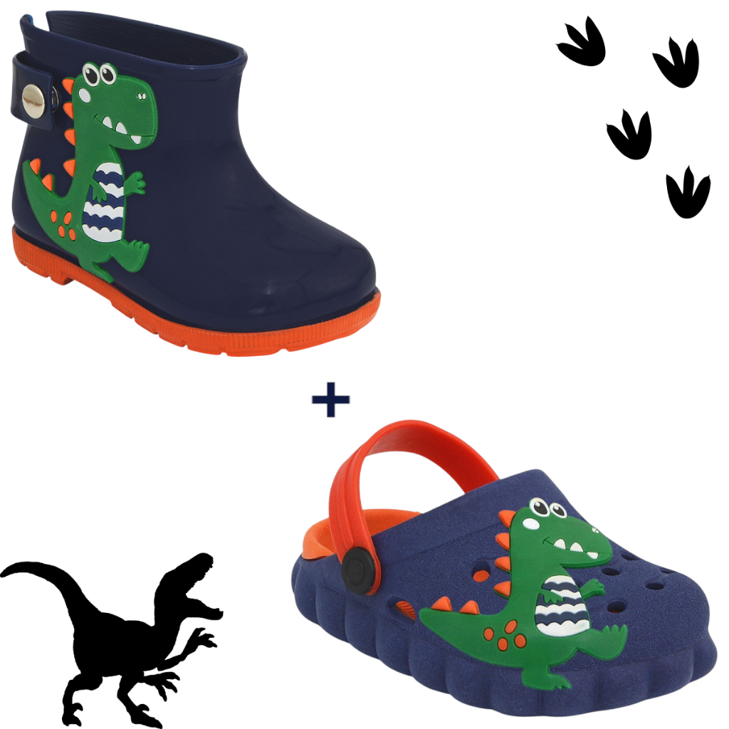 Kit bota galocha e babuche infantil menino masculino dinossauro lançamento