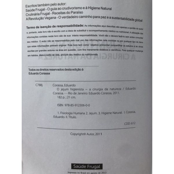 O Jejum Higienista - A cirurgia da natureza - Eduardo Corassa