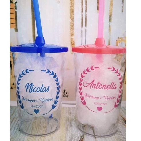 03 Copos acrílico 480ml personalizado com tampa e canudo