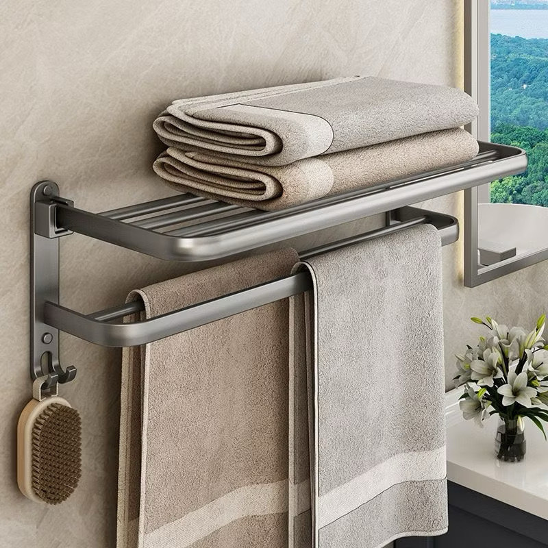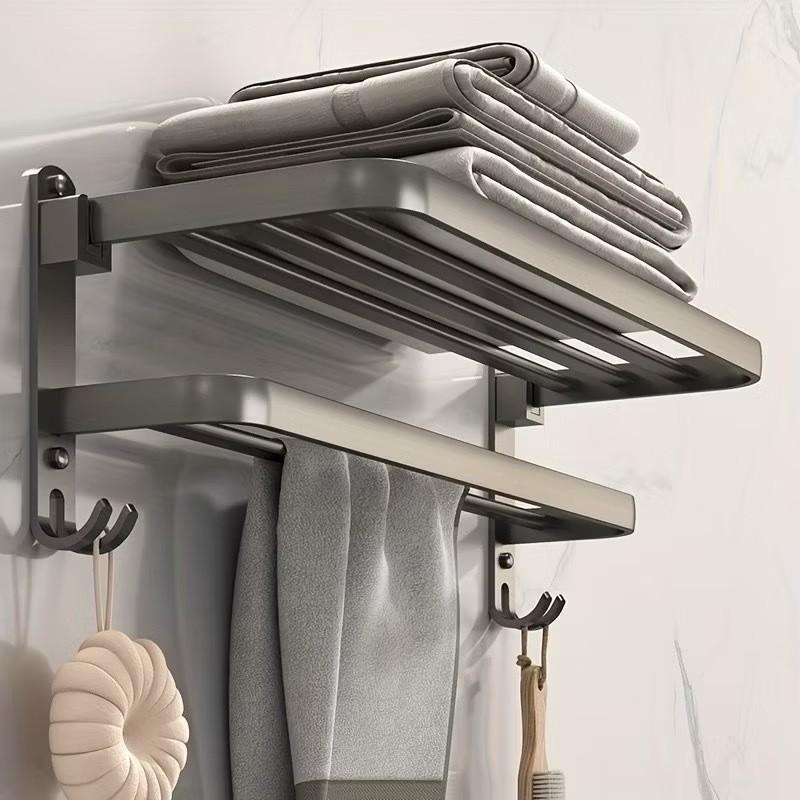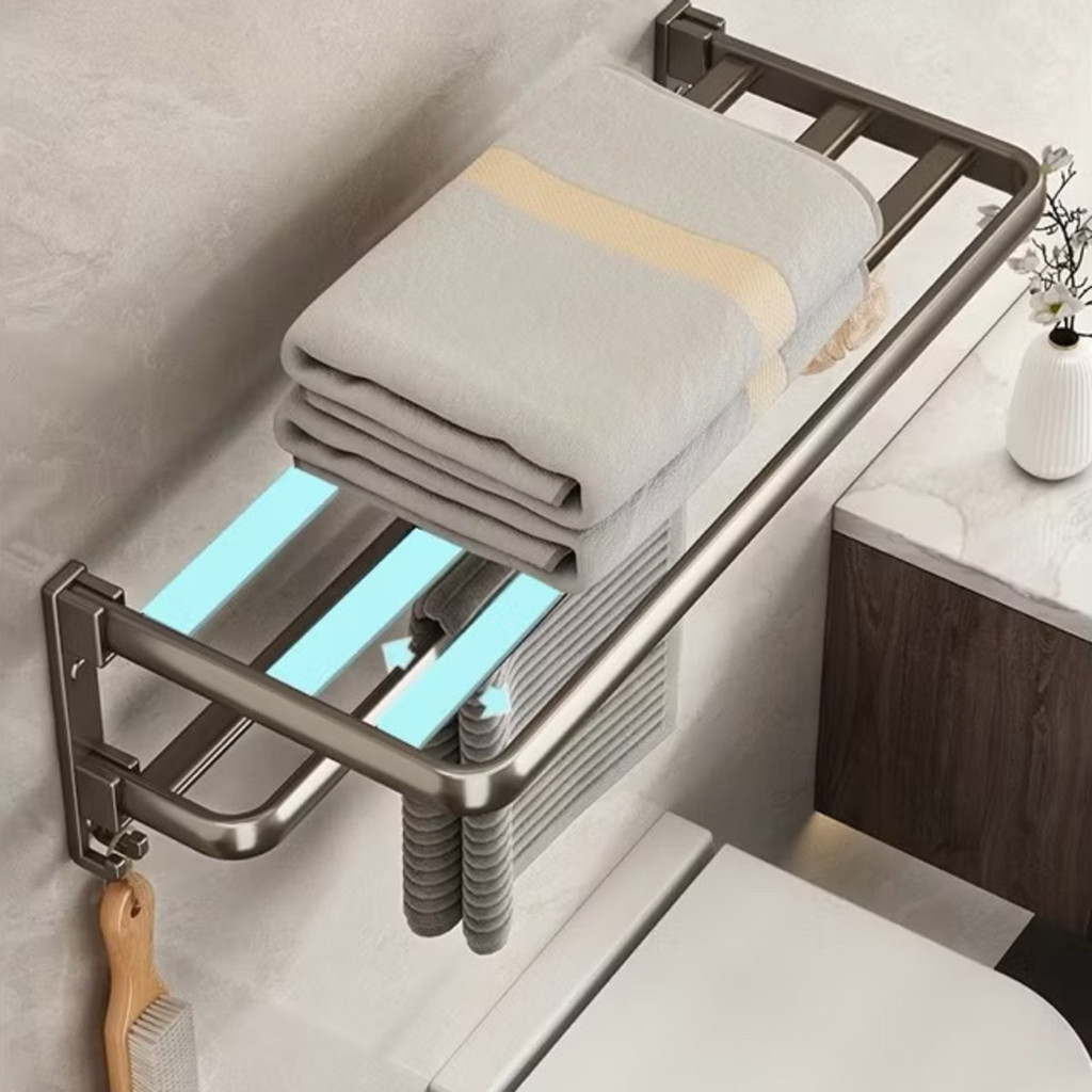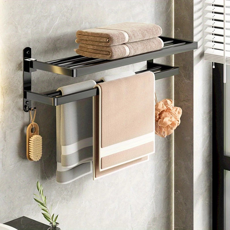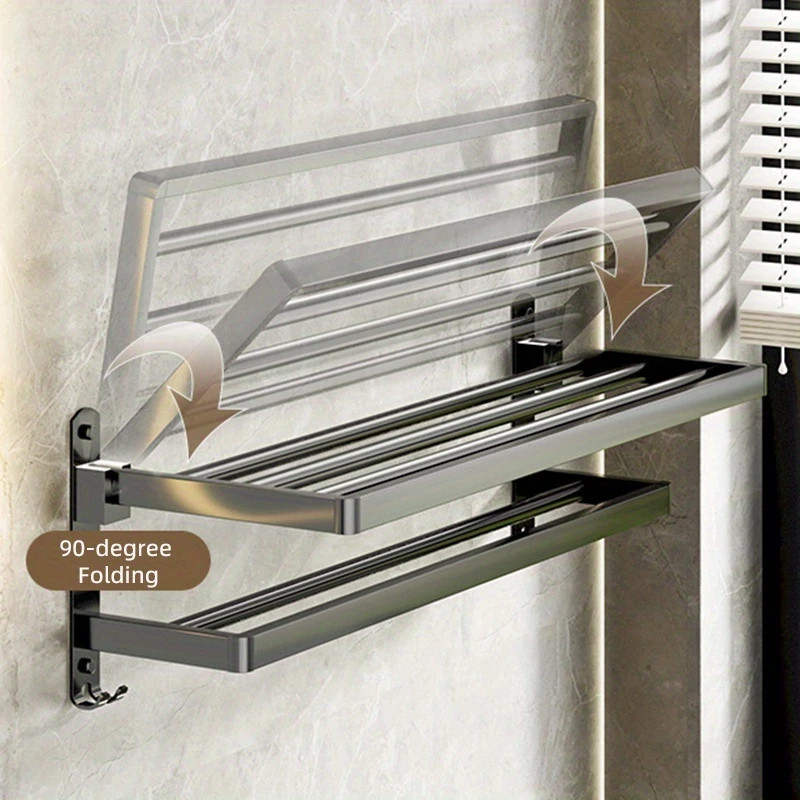 Porta Toalha Suporte Toalheiro de Banheiro Duplo Aço Inox Premium Retratil 90° Adesivo